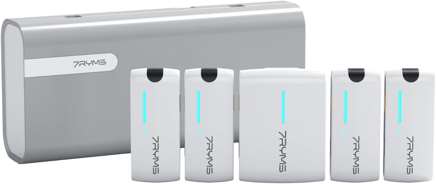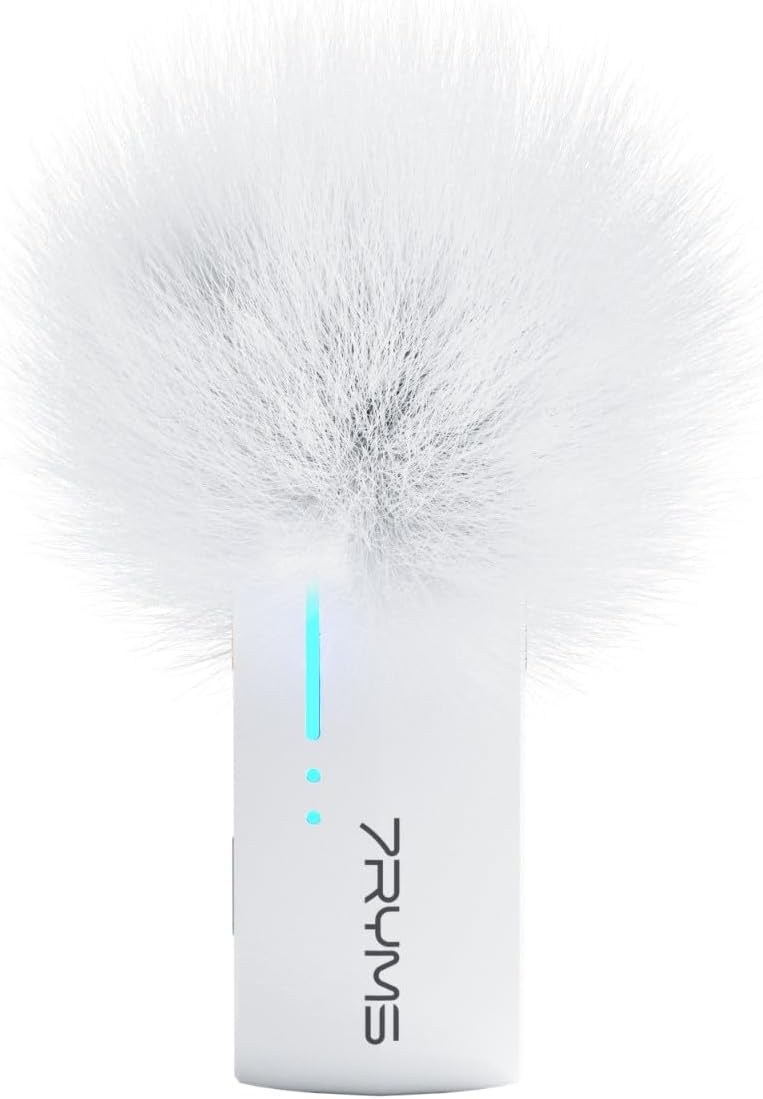 7RYMS iRay DW40 Wireless Lavalier Microphone with Four Transmitters One Charging Case Support AI Denoise, 48kHz/24bit Recording for Video Vlog, Interview, Live Streaming, Podcasting-White