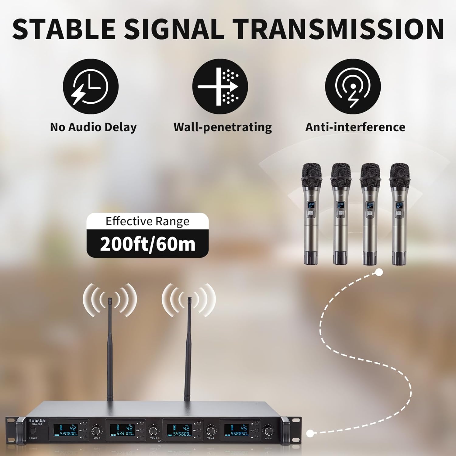 - WHAT YOU GET: The package includes 1*Receiver, 4*Handheld Wireless Microphones, 1*Power Adapter, 1*User Manual. Please note that batteries are NOT included