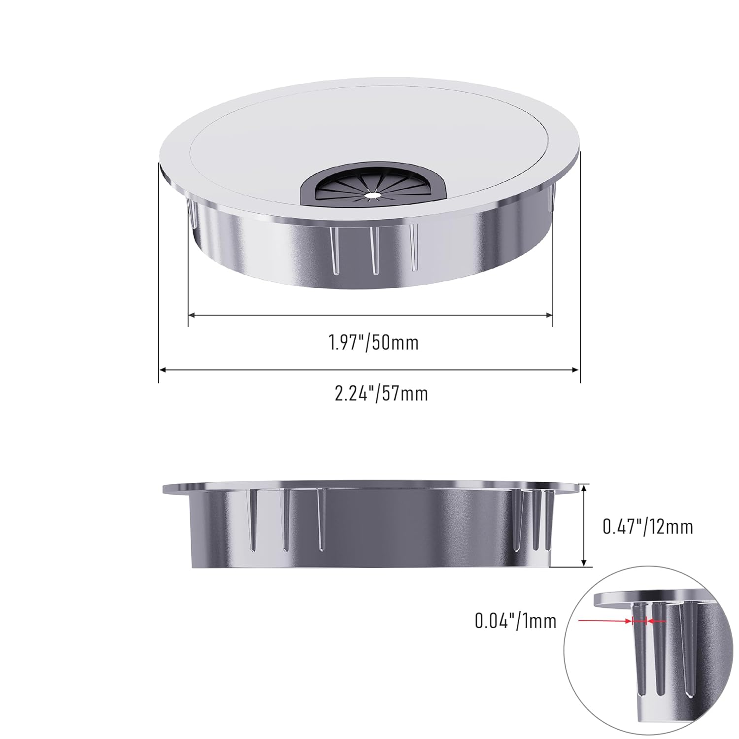 Desk Grommet 2 Inch 50mm, Zinc Alloy Computer Desk Wire Hole Cover, Office Desktop Cord Cable Hole Metal Ring, Silver Tone