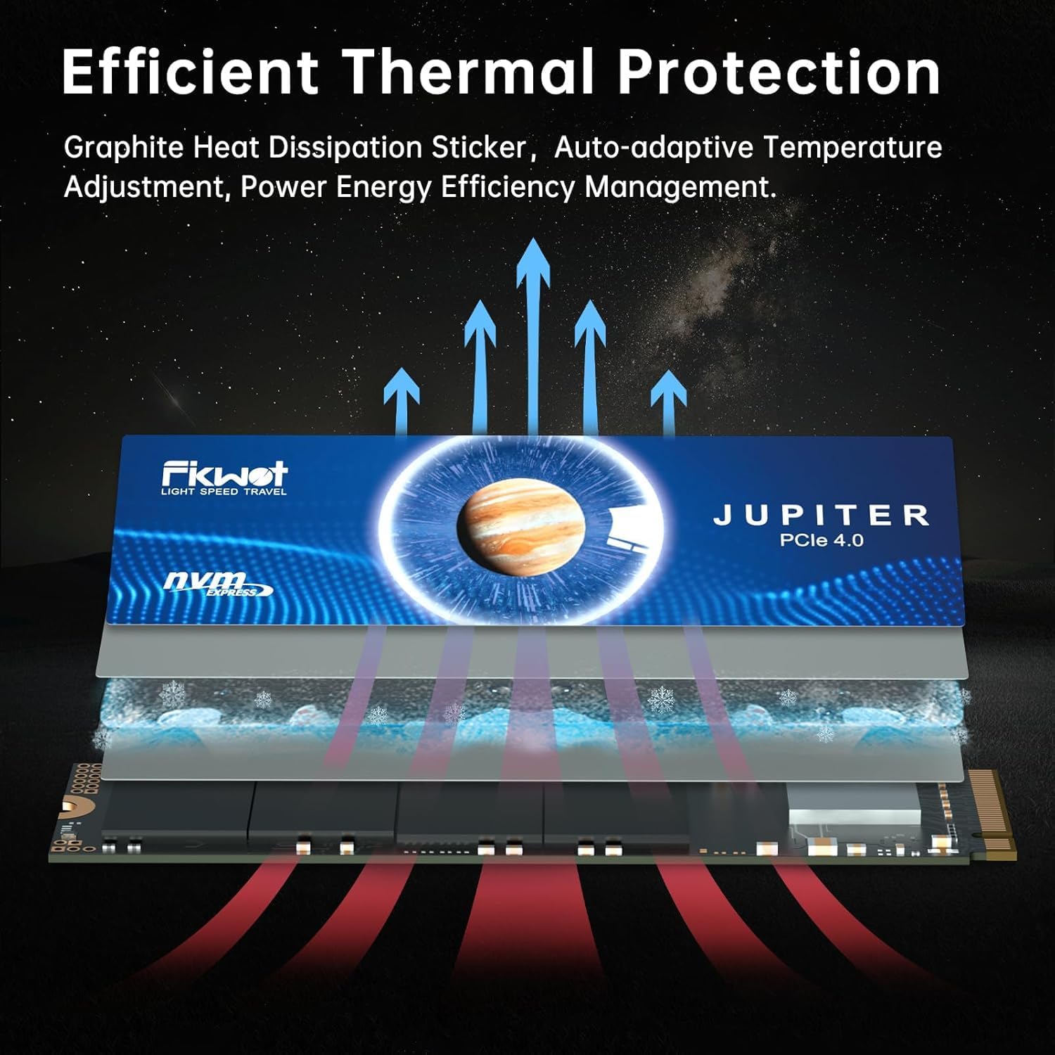 - [Excellent Thermal Management]: FX991 NVMe SSD 2TB is equipped with Auto-adaptive temperature adjustment and power efficiency management. It can intelligently adjust the NVMe SSD heating temperature and power consumption control, which can reduces the burden on the device and extends the battery life of laptops and other devices. We have equipped M2 SSD 2TB with high-conductivity graphite heatsink. Under high load conditions, the internal ssd reading speed can still be close to the peak.