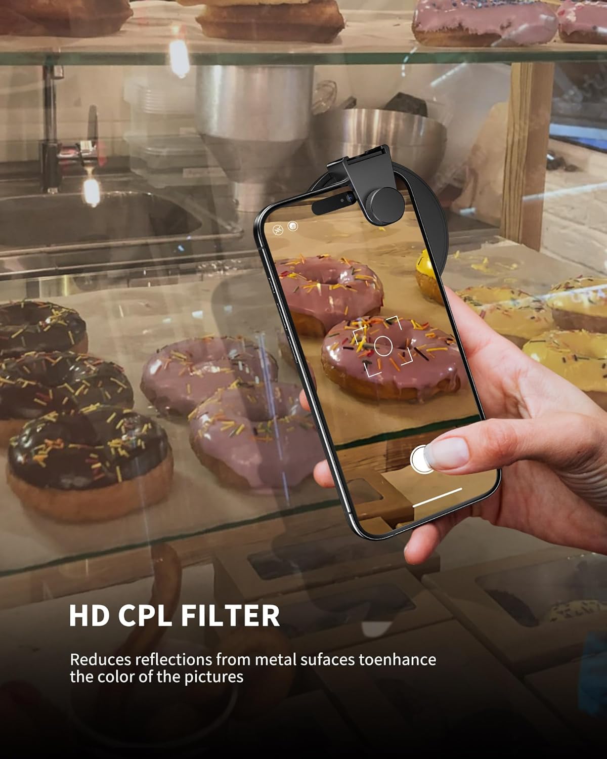 - Pretty lightweight & easy to carry✅ What in Box: 1x 72mm CPL Filter, 1 x Universal Phone Clip with Cold Shoe, 1 x Portable Storage Case