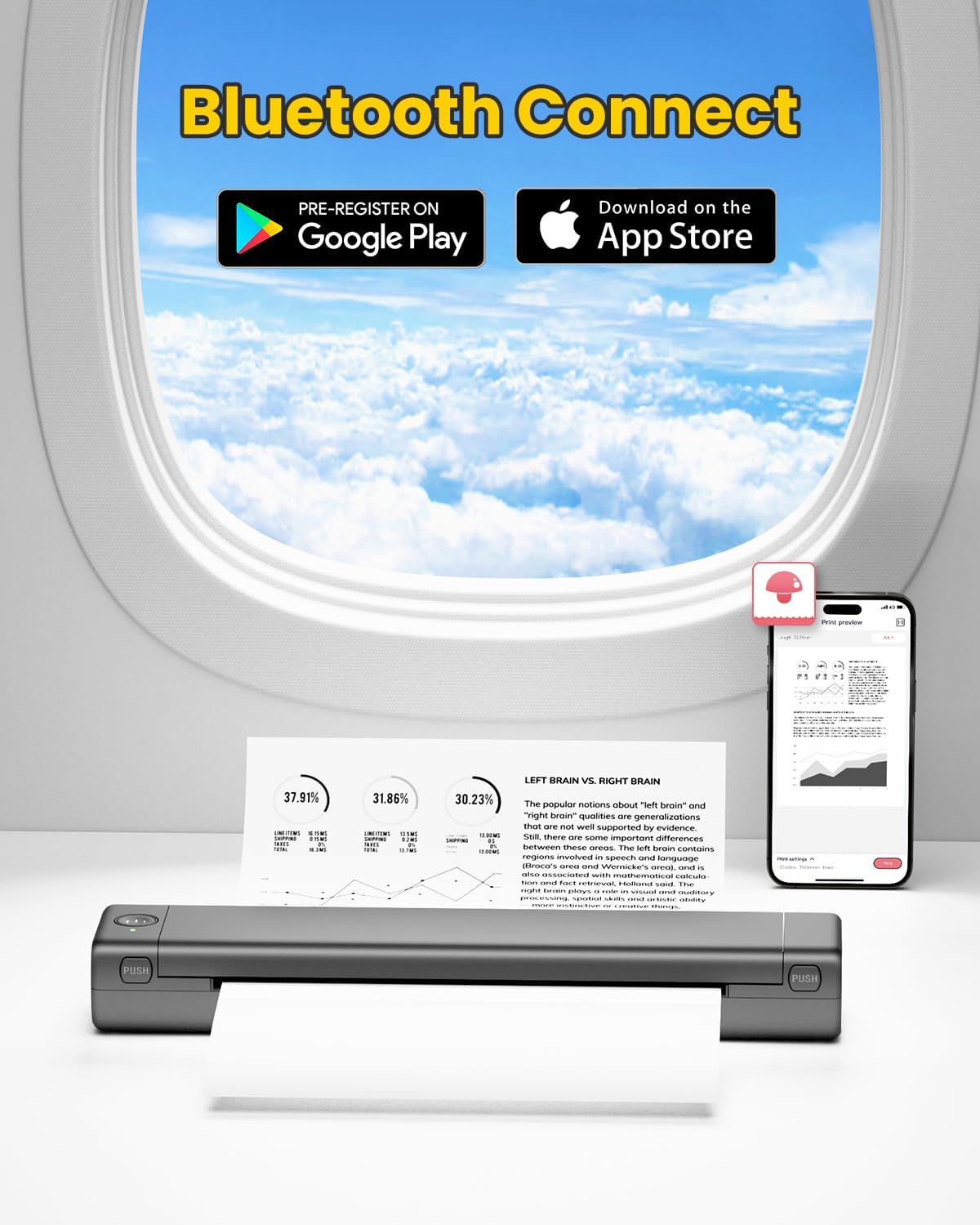 - Bluetooth Printer - Go Wireless by Bluetooth - Get the "Phomemo" app from Google Play or Apple Store to print via Bluetooth on your Portable Thermal Printer for iOS and Android. (Note: Mobile devices cannot be directly connected to Bluetooth and need to be used through the Phomemo app.)