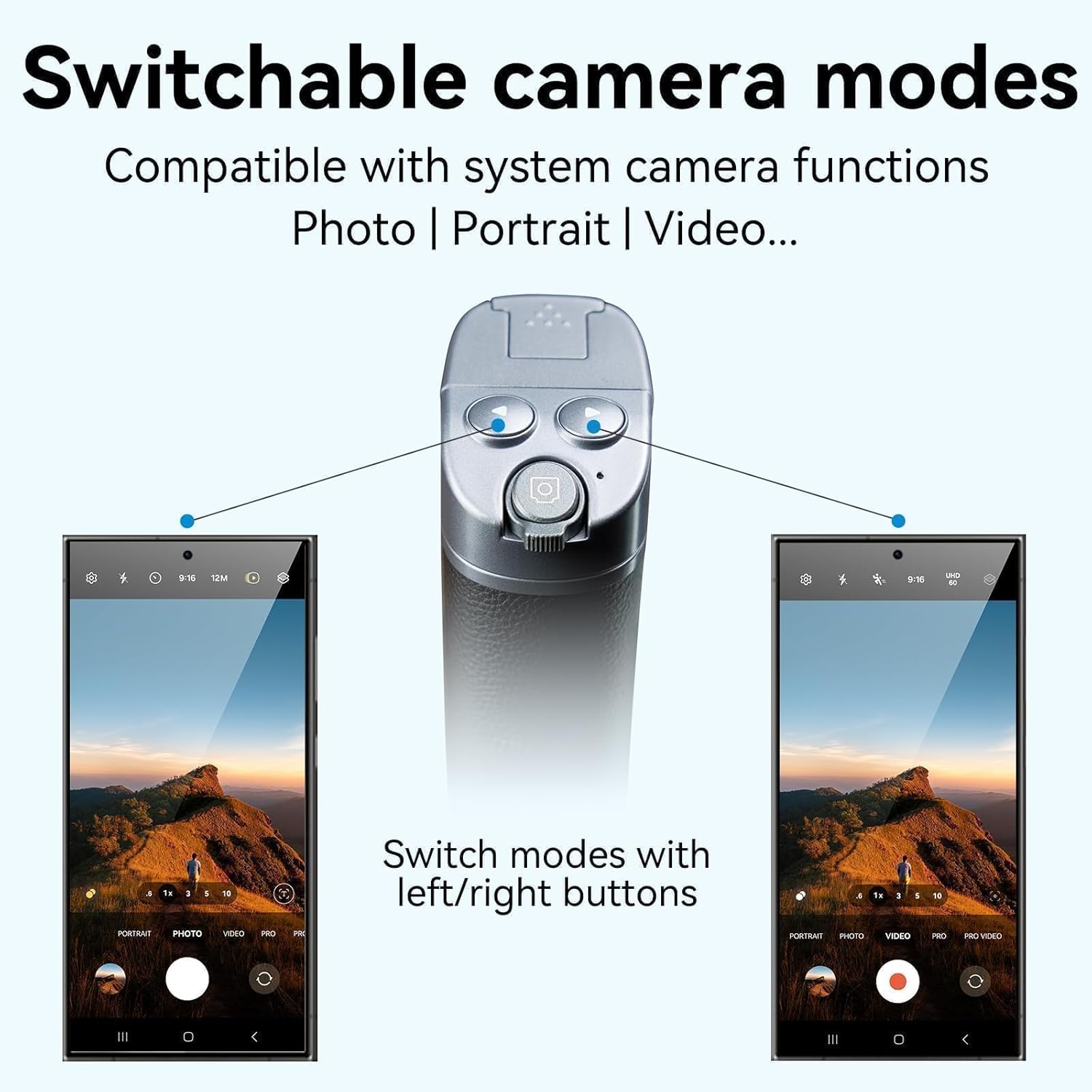 - 【TELESIN° Phone Camera Grip】TELESIN° smartphone camera shutter grip features system-level Bluetooth control, allowing you to use the native camera without downloading an app. It offers a joystick for quick zoom, focus shooting, classic half-shutter, and instant switching between front and rear camera modes for photos, portraits, and videos