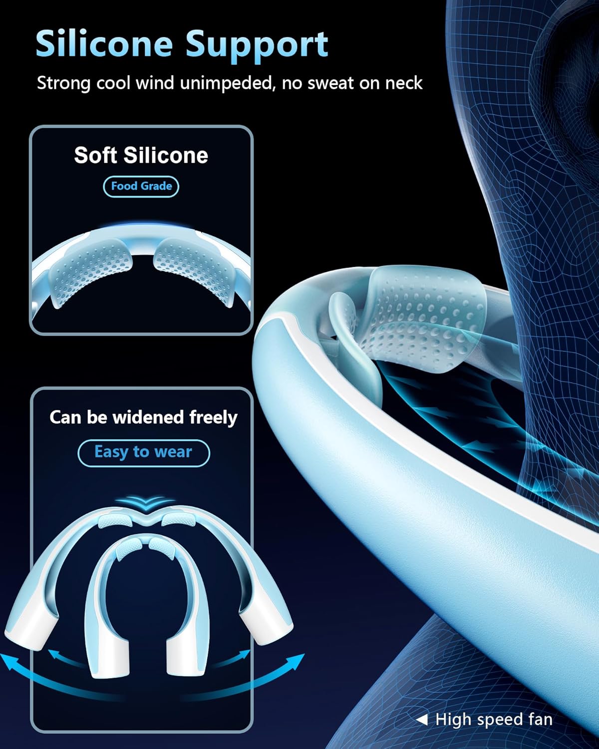 - Next-Gen AI Neck Fan - Experience a superior level of cooling with our upgraded AI portable and wearable fan, featuring two turbine motor fans that provide 360° airflow around your neck and face. The scientifically designed air outlets ensure you can enjoy a refreshing breeze from all angles, keeping you cool even when out in high temperatures.