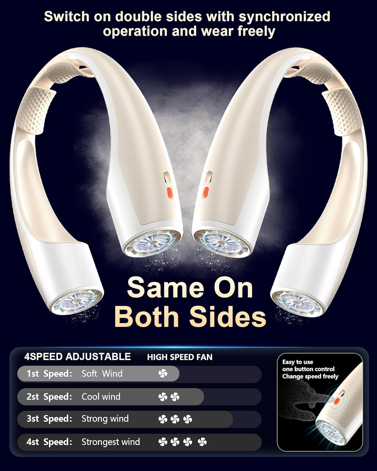 - 4 Adjustable Wind Speeds - With 4 speed modes (Sleep/Comfort/Cooling/Strong), ranging from gentle and soothing to powerful, you can easily adjust the airflow speed to your comfort by pressing the power button. The low working noise ensures it won't disturb you while studying, working, or engaging in other activities.