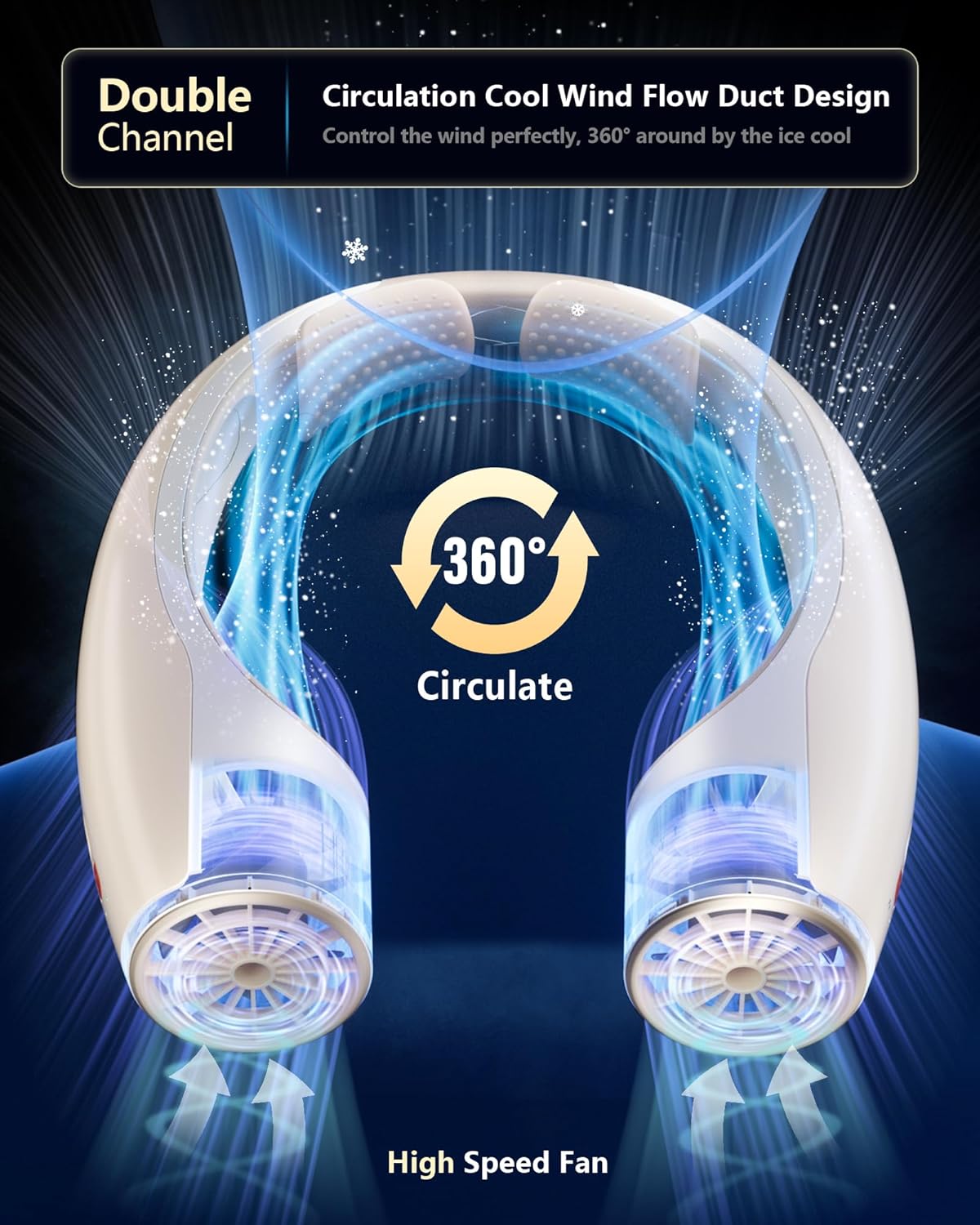 - Next-Gen AI Neck Fan - Experience a superior level of cooling with our upgraded AI portable and wearable fan, featuring two turbine motor fans that provide 360° airflow around your neck and face. The scientifically designed air outlets ensure you can enjoy a refreshing breeze from all angles, keeping you cool even when out in high temperatures.