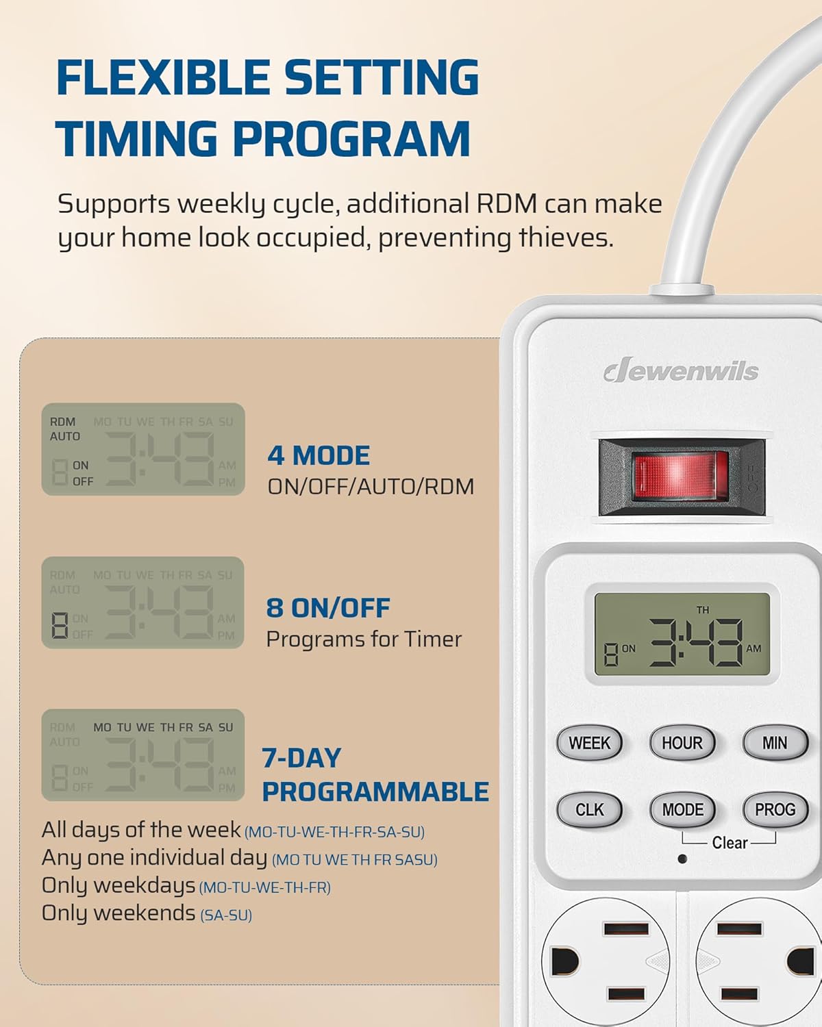 - [Zoned Timing for Complete Control] Take full control of your power usage with this 8-outlet power strip, featuring 4 timed outlets and 4 always-on outlets. Timed outlets can also be manually switched, offering flexible management of your devices while optimizing energy savings