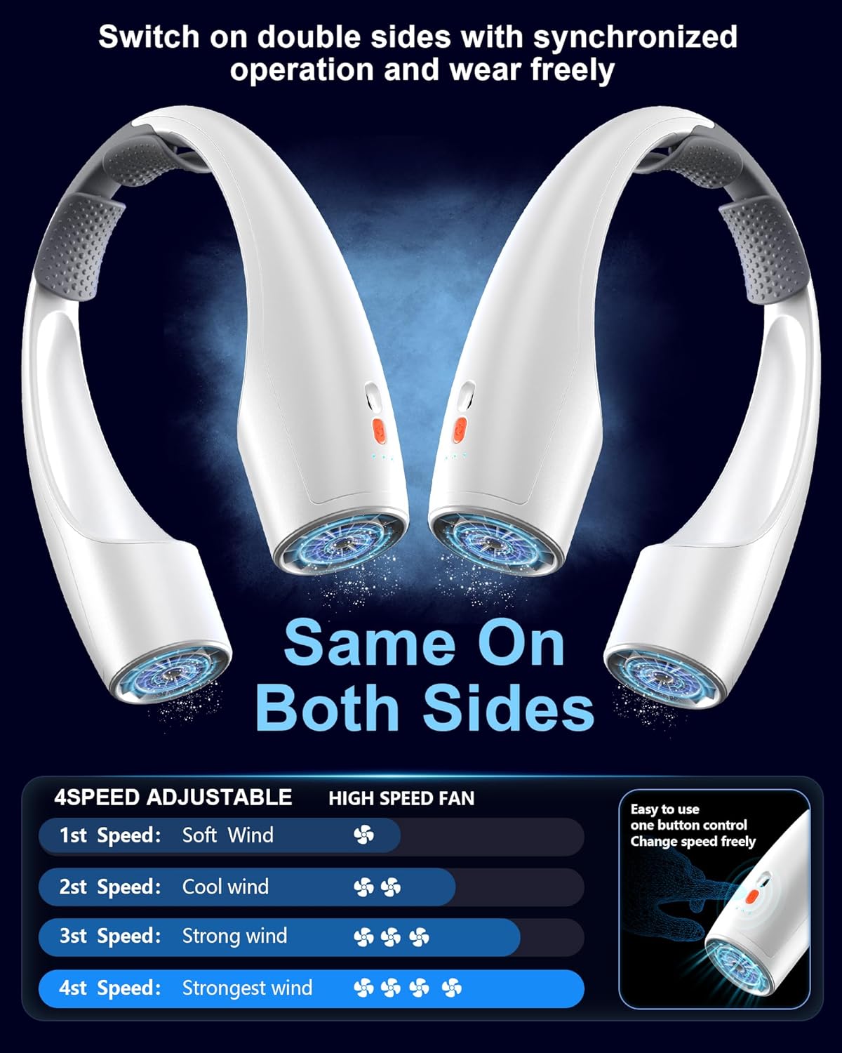 - 4 Adjustable Wind Speeds - With 4 speed modes (Sleep/Comfort/Cooling/Strong), ranging from gentle and soothing to powerful, you can easily adjust the airflow speed to your comfort by pressing the power button. The low working noise ensures it won't disturb you while studying, working, or engaging in other activities.