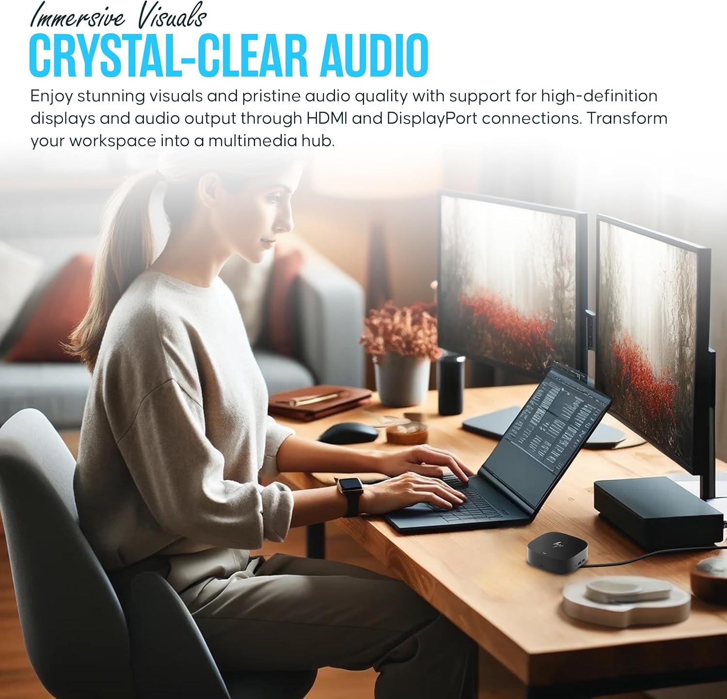 - [Compact Design] - Measuring at 4.8 inches by 4.8 inches by 1.8 inches and weighing just 23.98 ounces, this docking station offers a sleek and space-saving solution for your workspace.