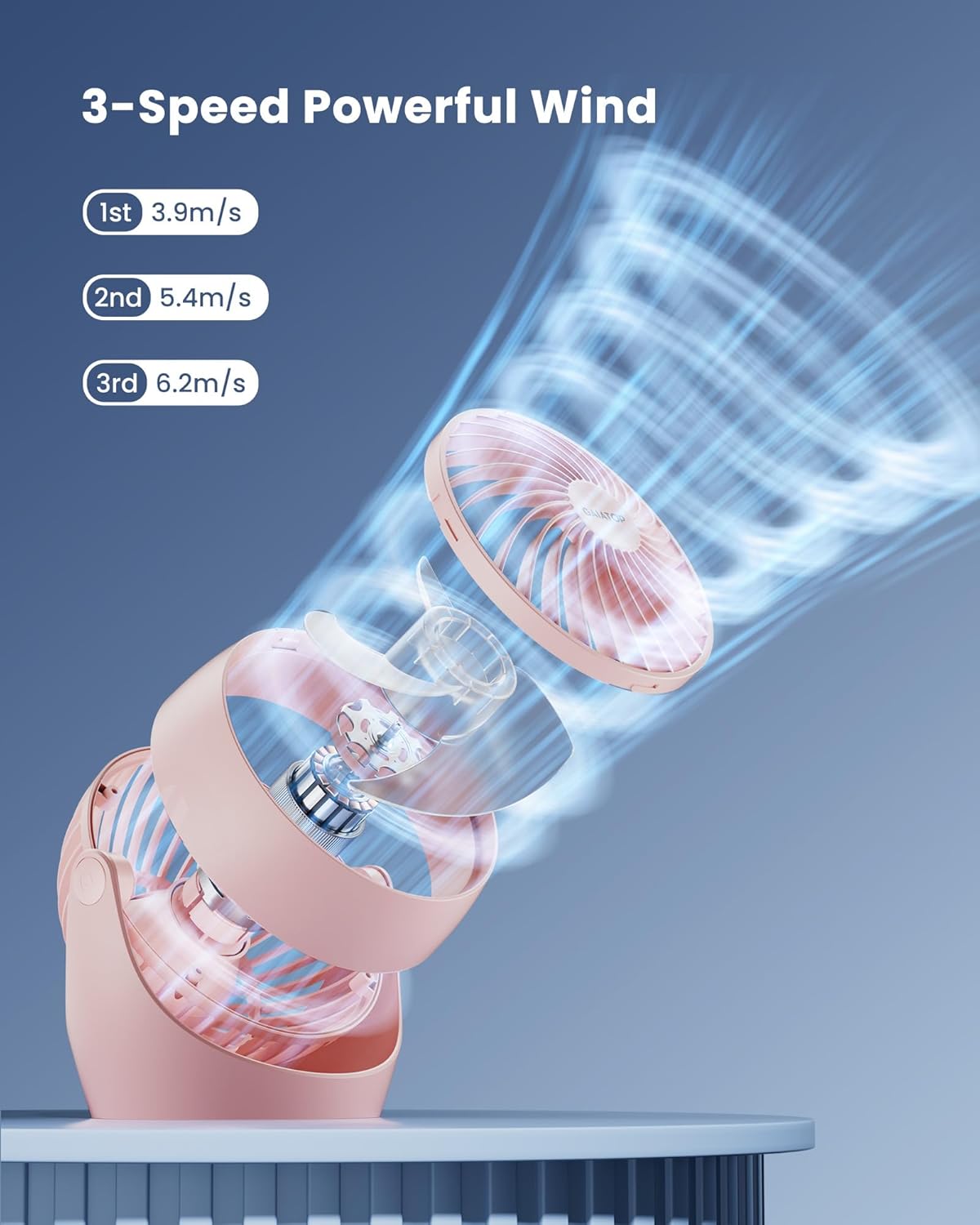 - Whisper-Quiet Cooling: With upgraded motor, the table fan has smoother airflow with minimal noise (30dB),max wind speed reaches 6.2 m/s; The cooling fan is powerful and quiet enough to give you a comfortable working and resting environment