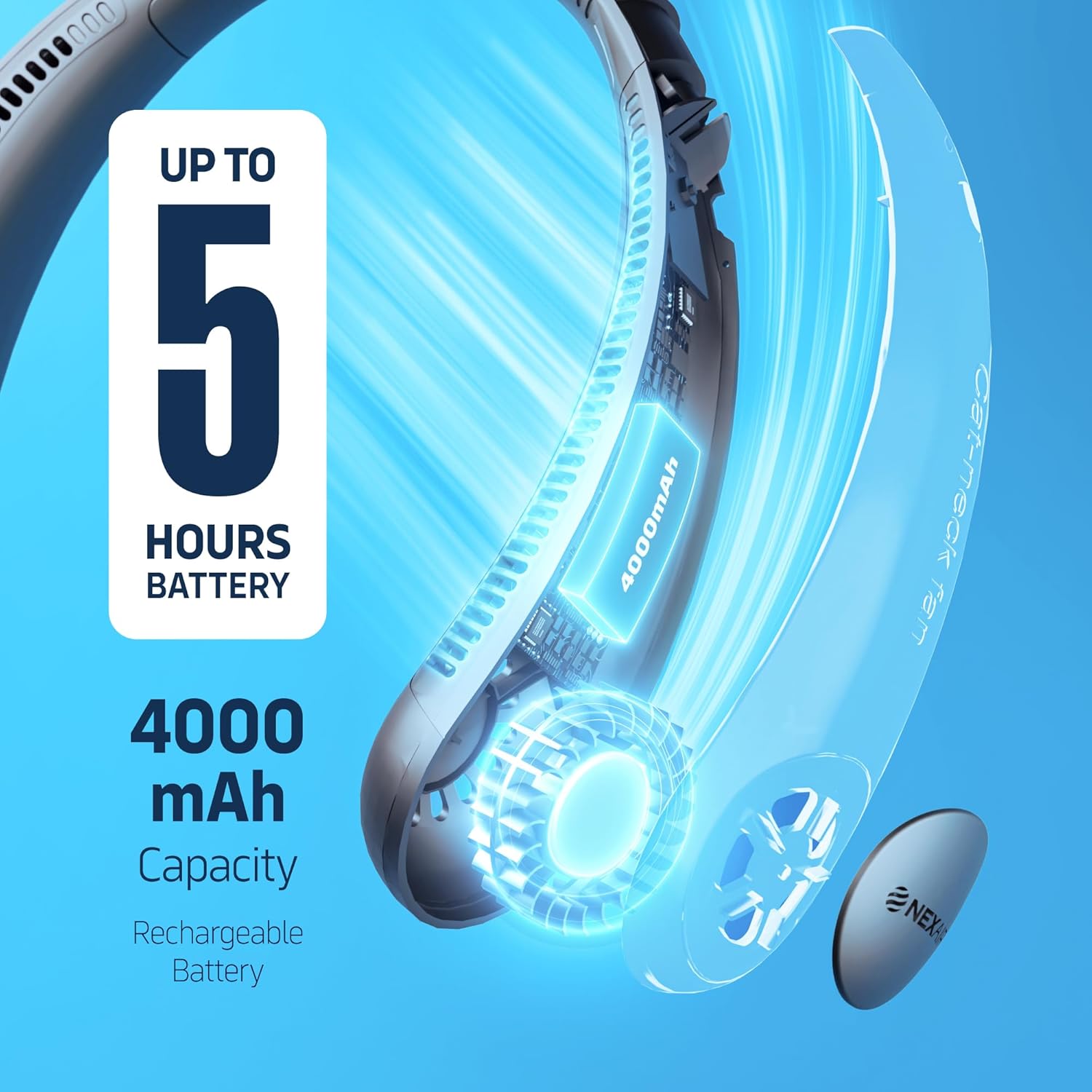 - WEARABLE FAN TO COOL ANYWHERE. This Neck Fan will give you the ultimate cooling experience anywhere and anytime, this fan is smooth and quiet operating, made of quality and comfortable material, which gives you a modern leafless neck fan. This has 48 double turbo air outlets with 3-speed airflow options.