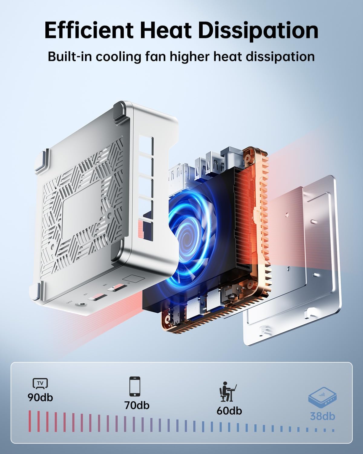 - 【16GB RAM + 256GB SSD, Easy to scale】E2 mini pc has built-in high-speed 16GB DDR RAM and a 256GB M.2 SATA SSD, 16GB RAM memory makes your whole system fast and responsive. In this way, it can support tasks such as memory-intensive multi-tab browsing and opening large drawing files quickly and easily. If you want more storage, you can also swap out the SSD for a maximum of 2TB to expand the storage space.