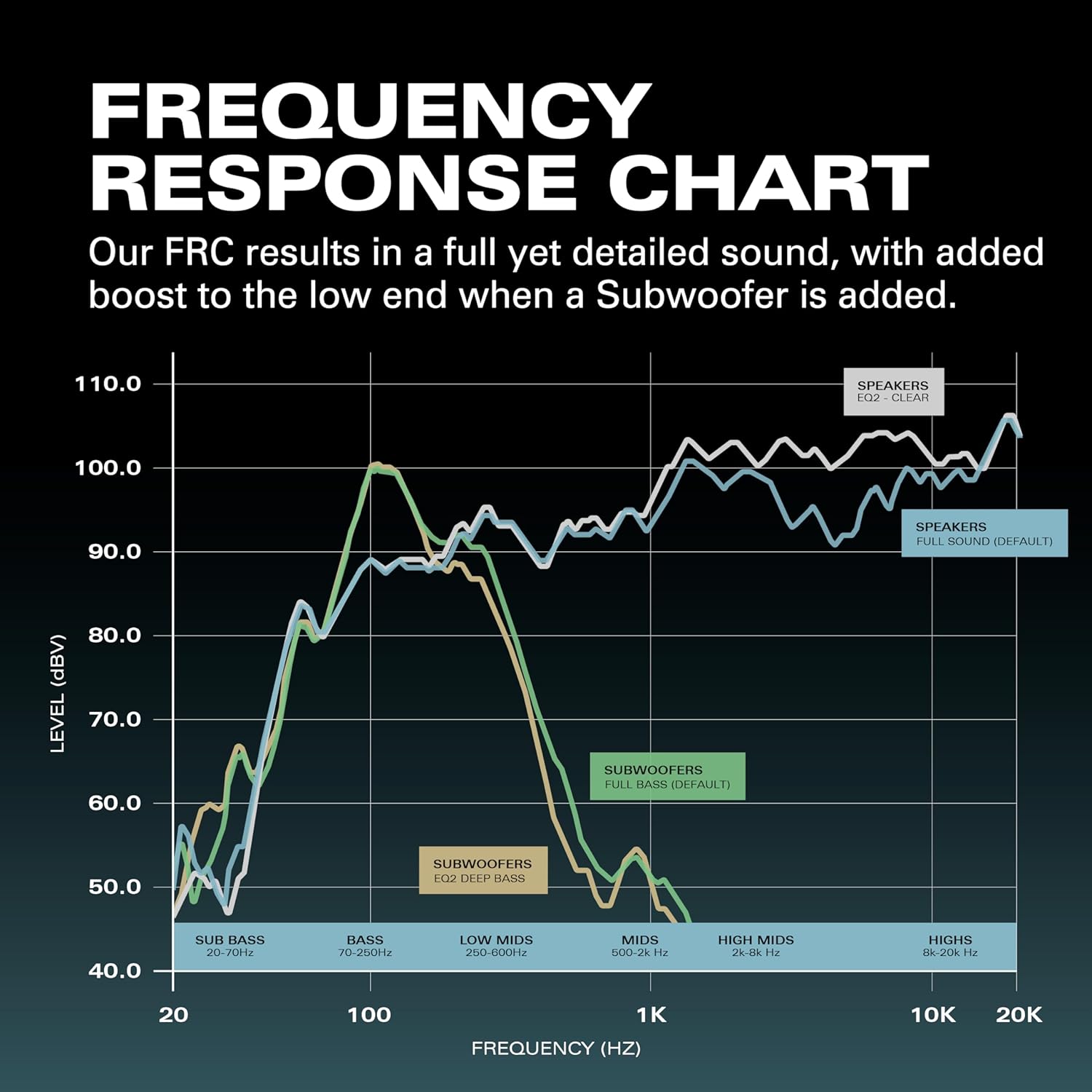 - CUSTOMIZABLE, UNLIMITED SOUND: Link unlimited speakers and subwoofers with one touch; set Left, Right, or Both channels; choose Full or Clear EQ modes. Water resistant for indoor outdoor use.