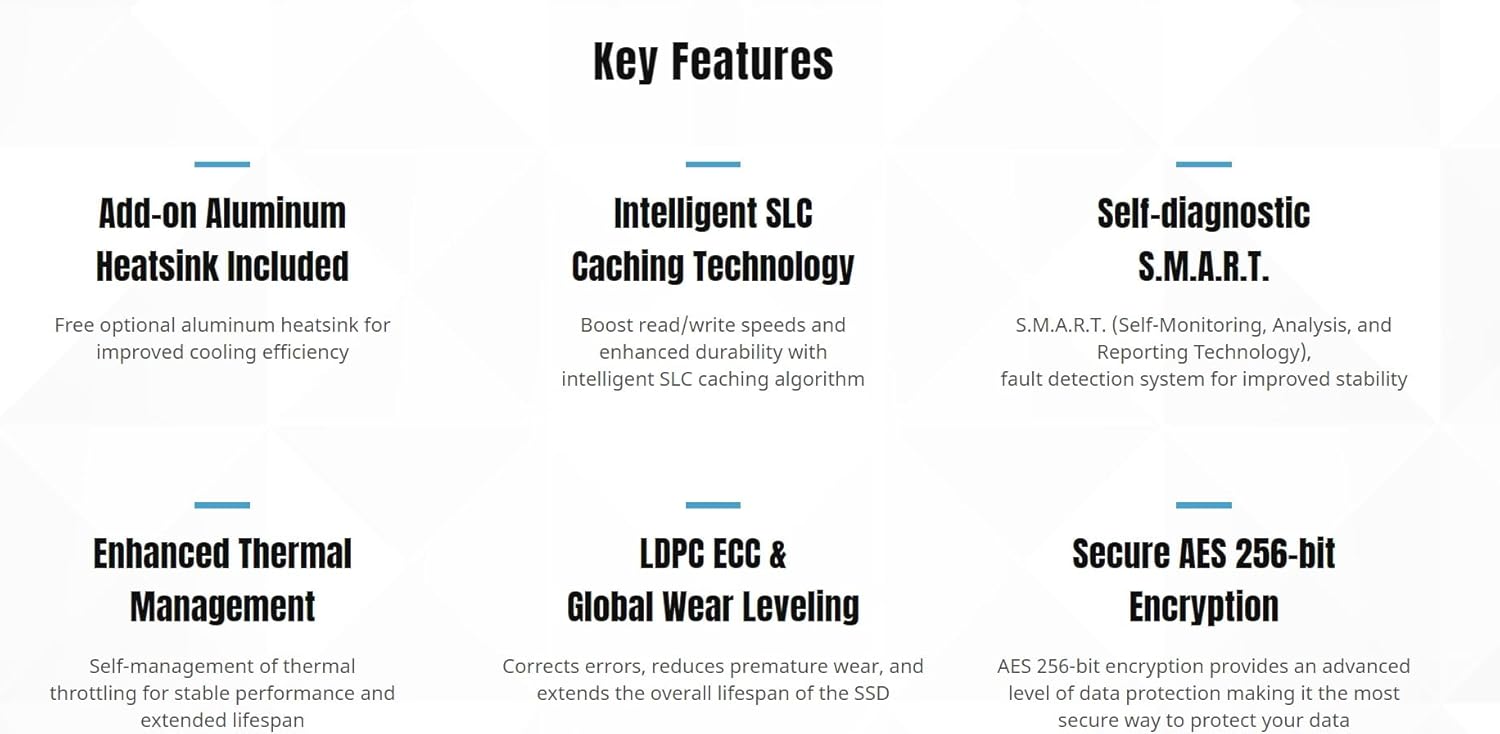 - Advanced 3D NAND Flash: The 3D NAND flash architecture is the latest advancement in NAND technology significantly boosts storage capacity through flash memory cells stacking vertically to enhance Total Bytes Written (TBW), and improves performance.