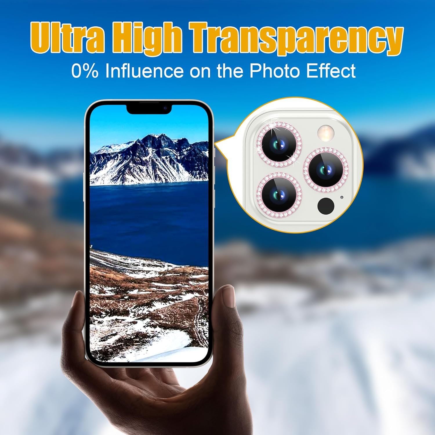 - ā[Two Bling Effects] There are 3 bling diamond rings and 3 bling glitter rings in the package. Free to match according to your own personal preferences. These rings glass are optical grade, protect your iPhone 13 Pro / 13 Pro Max camera lens from damage and scratches and has no effect on taking photos. Fully high transmittance sapphire glass with AR anti-reflection function: Camera anti-fall protection and Bling Bling Effect and Fully restored image quality.