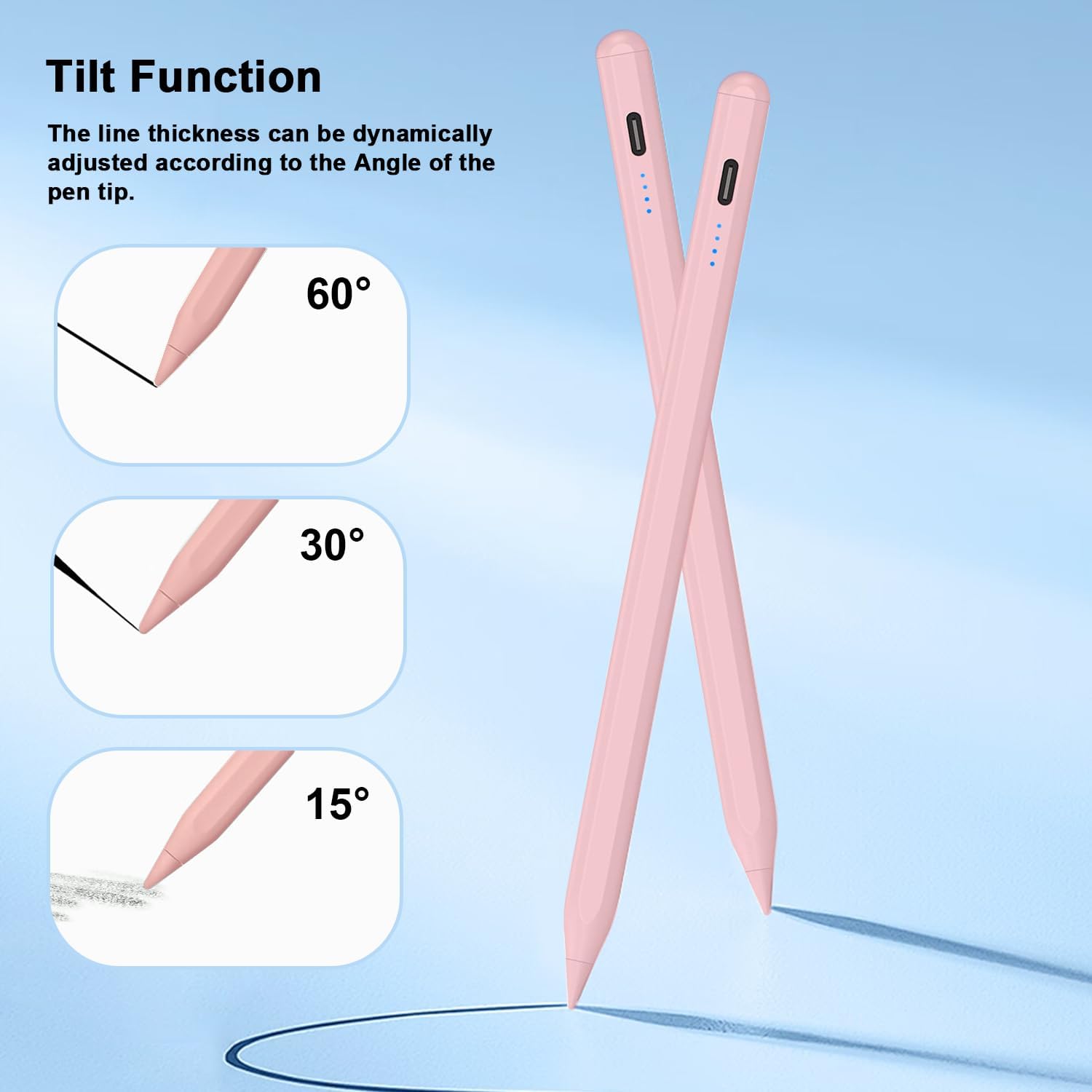 - 【Tilt sensitivity /POM tip】 The stylus pen has tilt sensitivity, which can simulate the different thickness of the line texture when drawing with pencil on iPad notes, making the painting more realistic. 【Note】Pressure sensing is Not supported. The stylus pen tips is made of the same POM material as the A-ple Pencil, enabling accurate and sensitive writing while preventing friction between the nib and the tablet screen. 【Nibs】This ipad air pencil set comes with 4 additional replacement nibs to extend the life of the pen