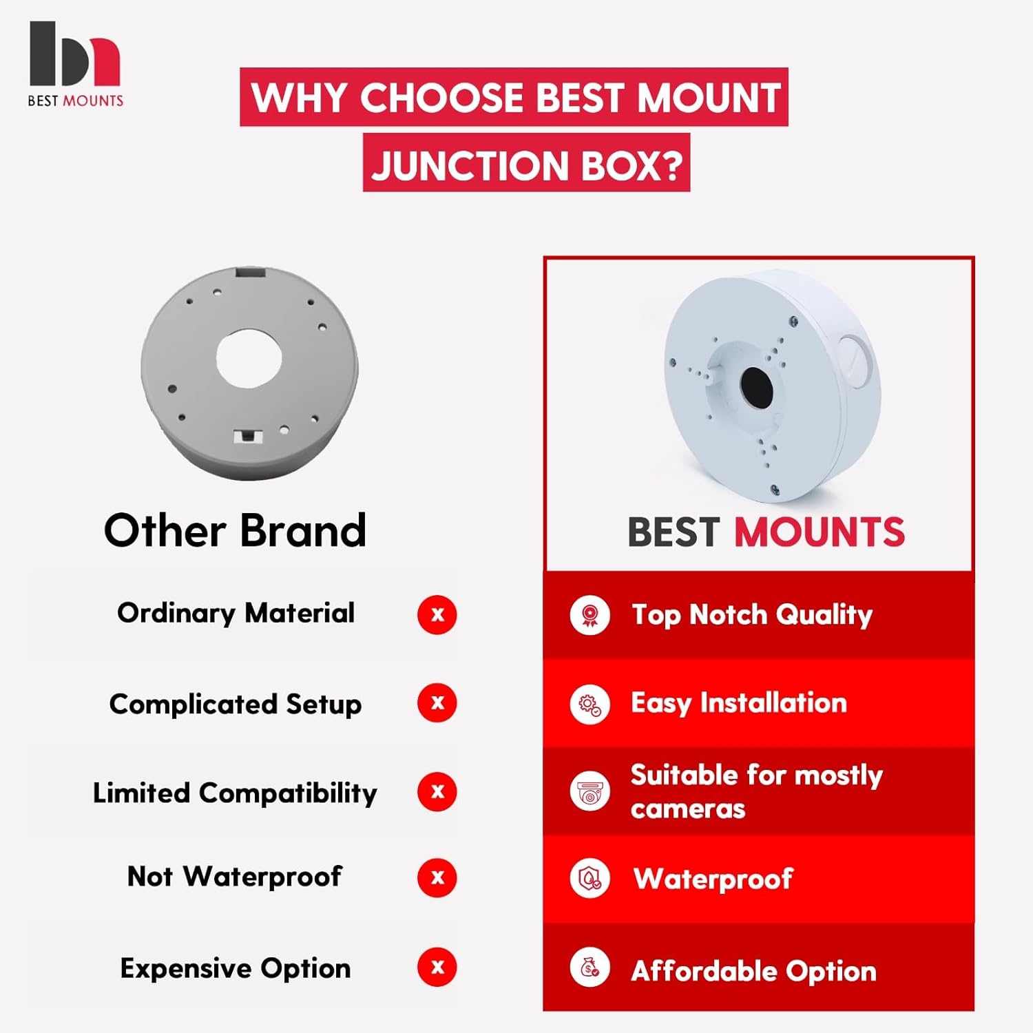 - ššššššššš š ššššššš: Best mount CCTV junction box is designed for versatility; our junction box is compatible with a range of camera models. It fits seamlessly with various camera brackets, including bullet cameras and solar panel mounts, offering a universal solution for different setups