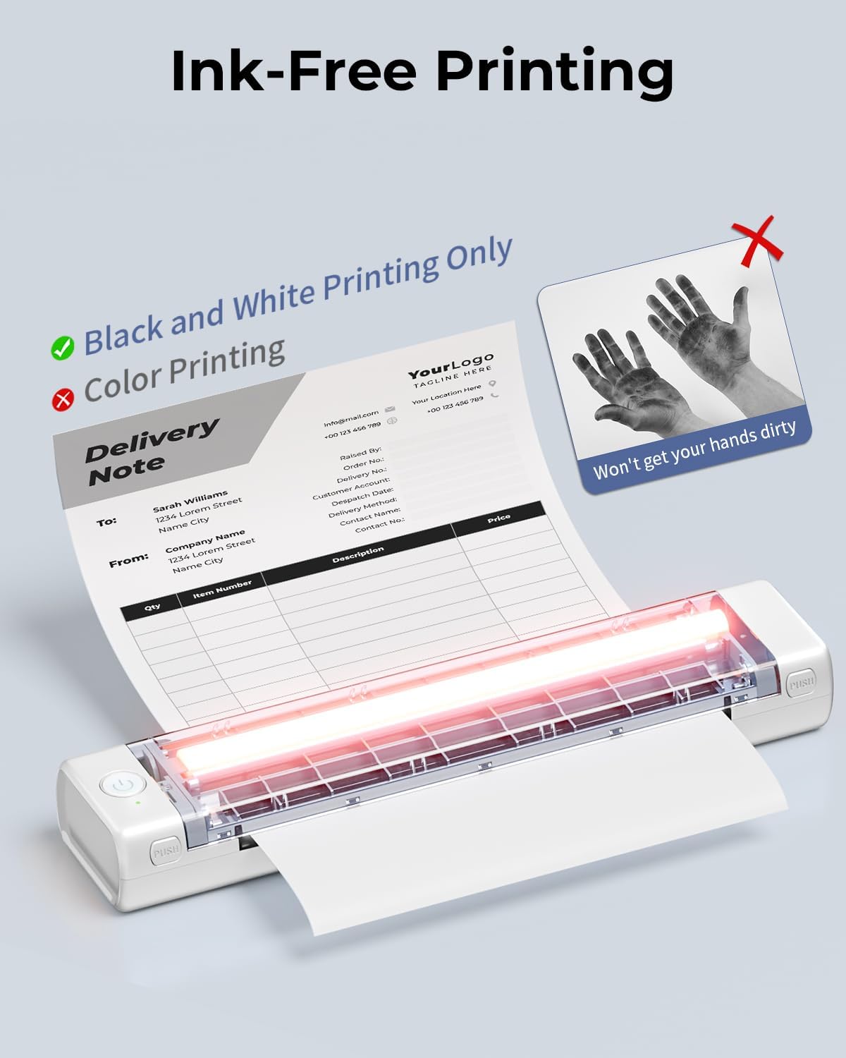 - Inkless Printer [nkless Printing]: Bluetooth Printer use thermal technology - doesn't require ink, toner, or ribbons, no ink-related blockages and cleaning issues. Instead, you only need to replace the thermal paper and you're good to go, each thermal paper costs only $0.12, cheaper than ink cartridges + paper. (Note: different from a traditional printer, requires a special paper (Thermal Paper) in order to utilize it., not support regular copy paper)