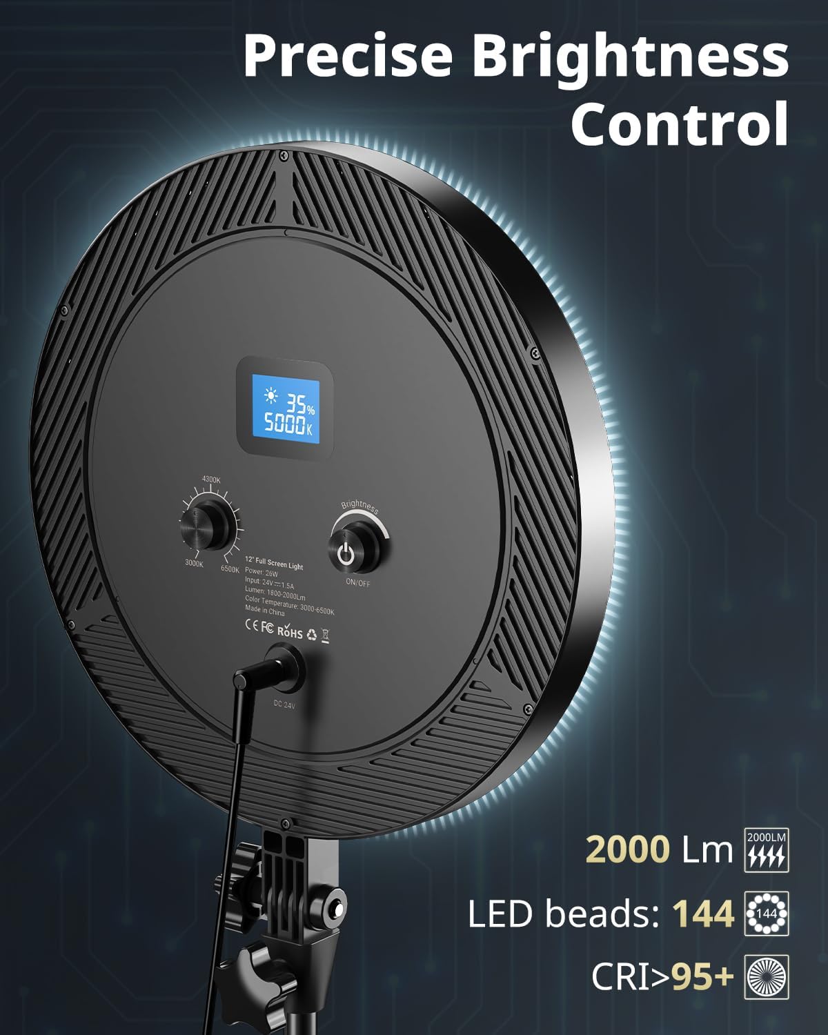 - 【Energy Efficiency】The full-screen lighting is powered by a DC adapter, providing a stable power supply that ensures consistent brightness and performance during use. Its brightness is equivalent to that of an 18-inch ring light, and the 25W power allows it to quickly reach the desired brightness, making it suitable for various applications.