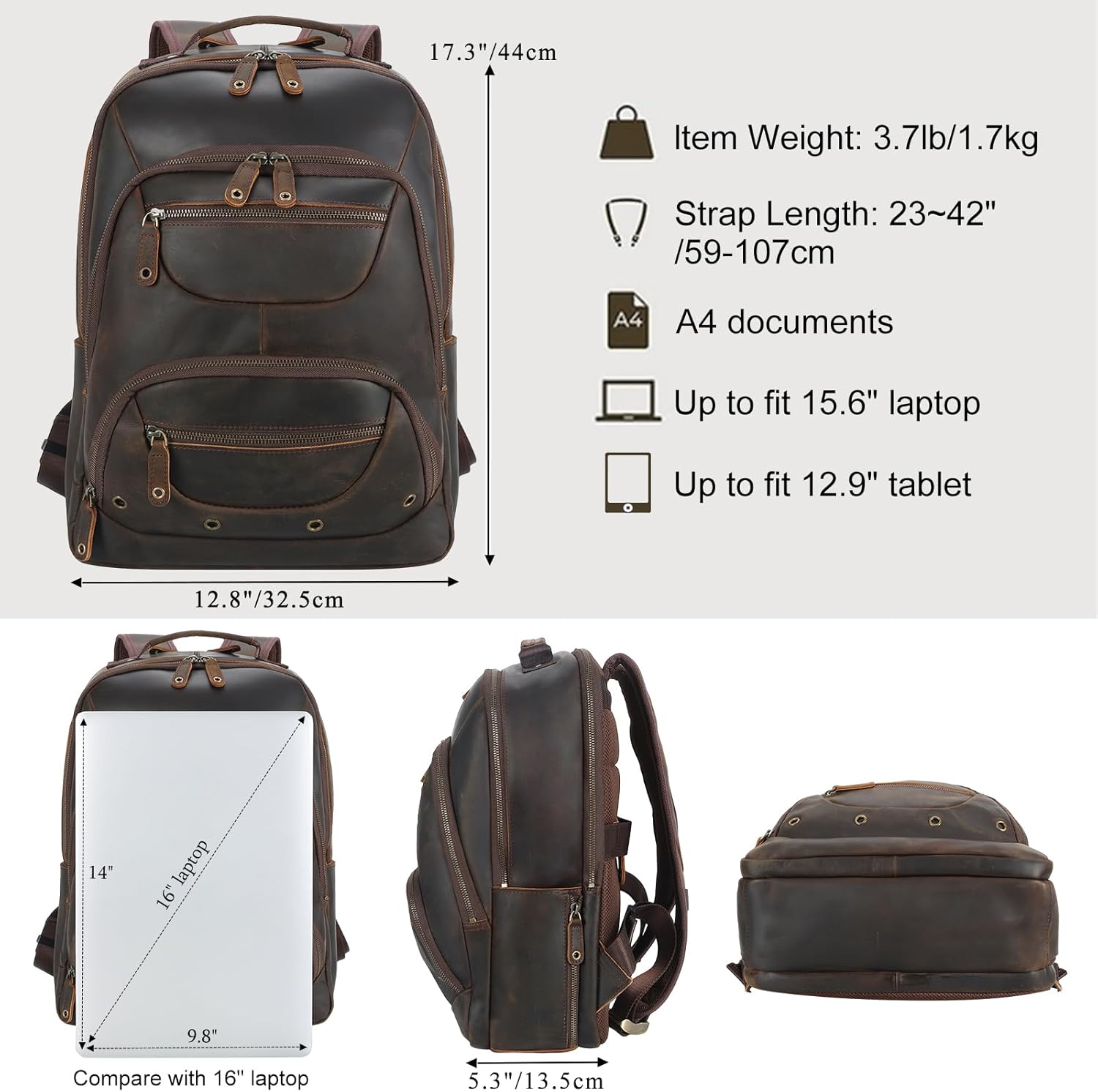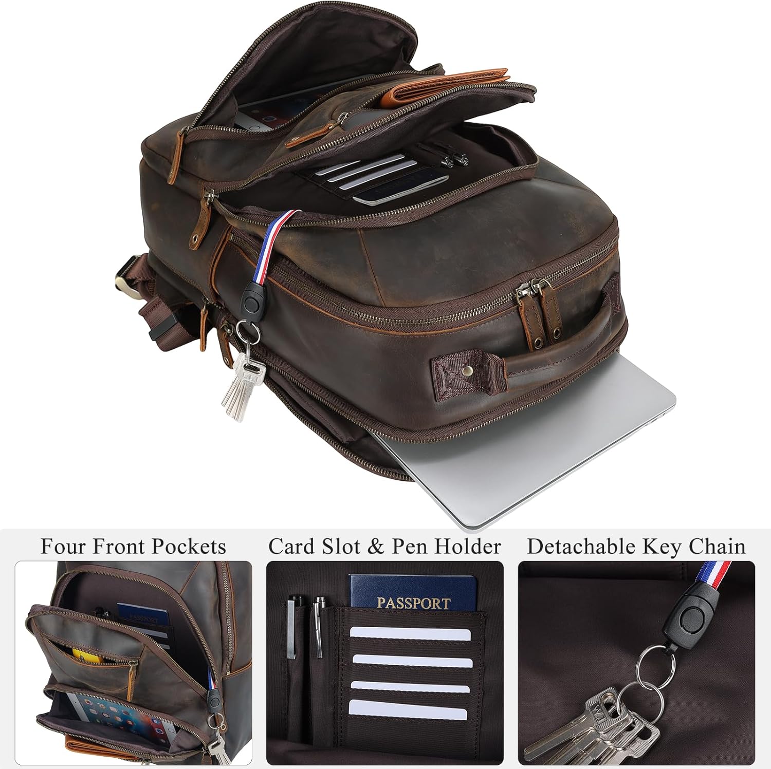 - 【Premium Craftsmanship】This mens leather backpack is made of 2mm thick full grain cowhide leather, with ykk metal zippers, tear-resistant polyester lining and reinforced stitching. The leather will develops a unique patina over time and use, adding charm to your backpack and catch the compliments