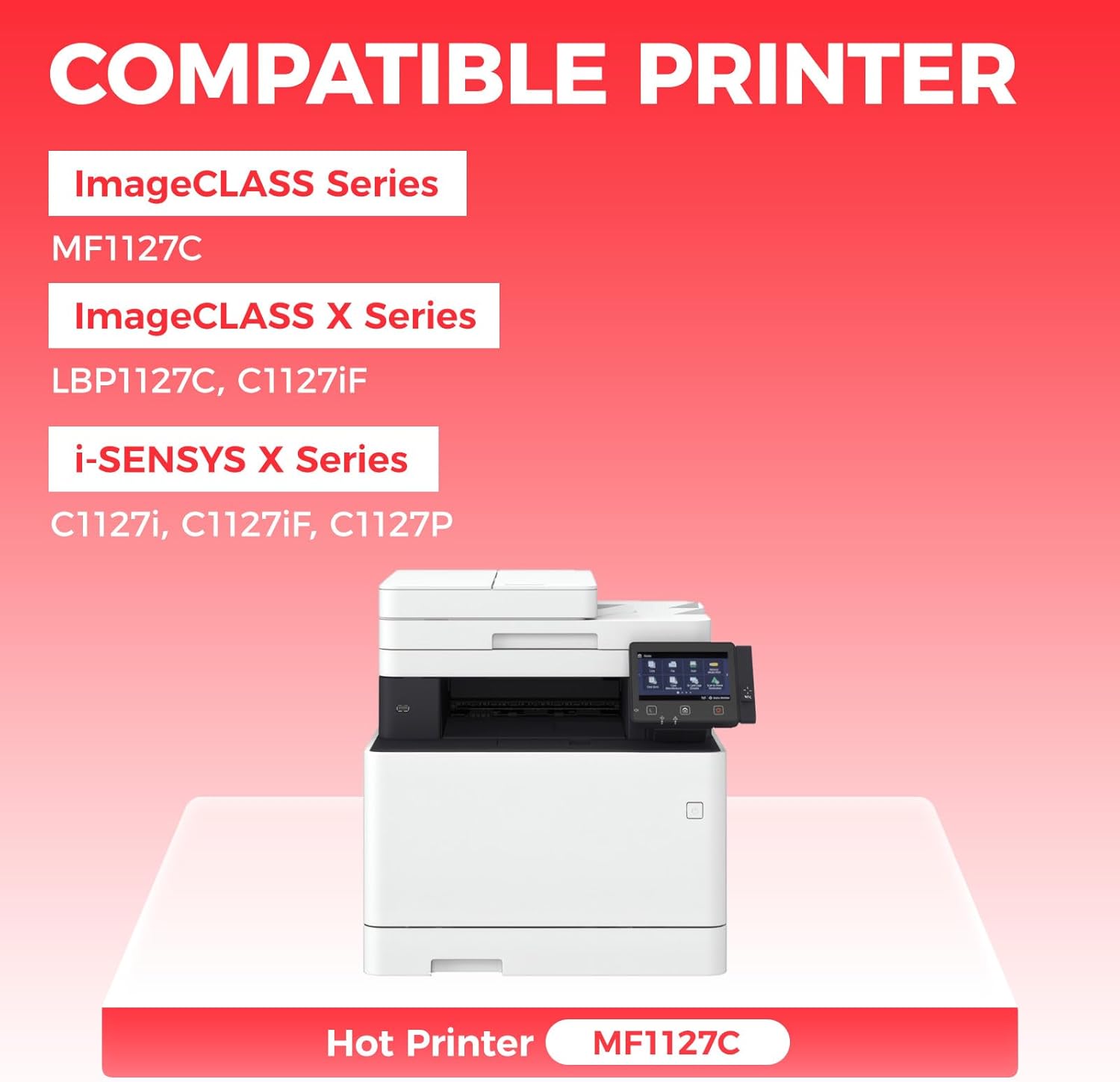 - Compatible Printer: Compatible with Canon Color imageCLASS Series:MF1127C, Color imageCLASS X Series: LBP1127C, Color imageCLASS X Series:C1127iF, Color i-SENSYS X Series:C1127i C1127iF C1127P Printer.