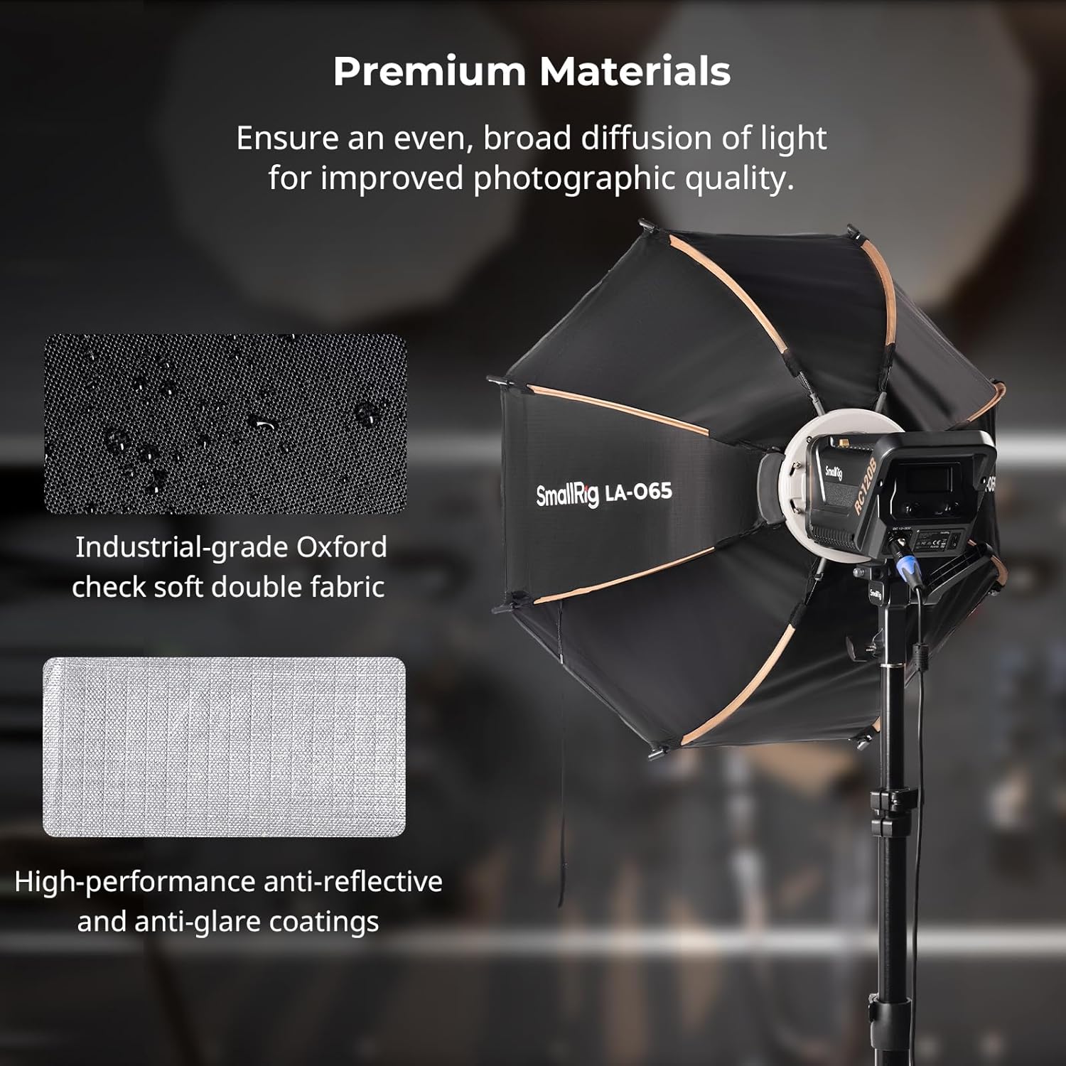- Premium Materials - This softbox features industrial-grade Oxford check soft double fabric and high-performance anti-reflective and anti-glare coatings to ensure an even, broad diffusion of light for improved photographic quality.
