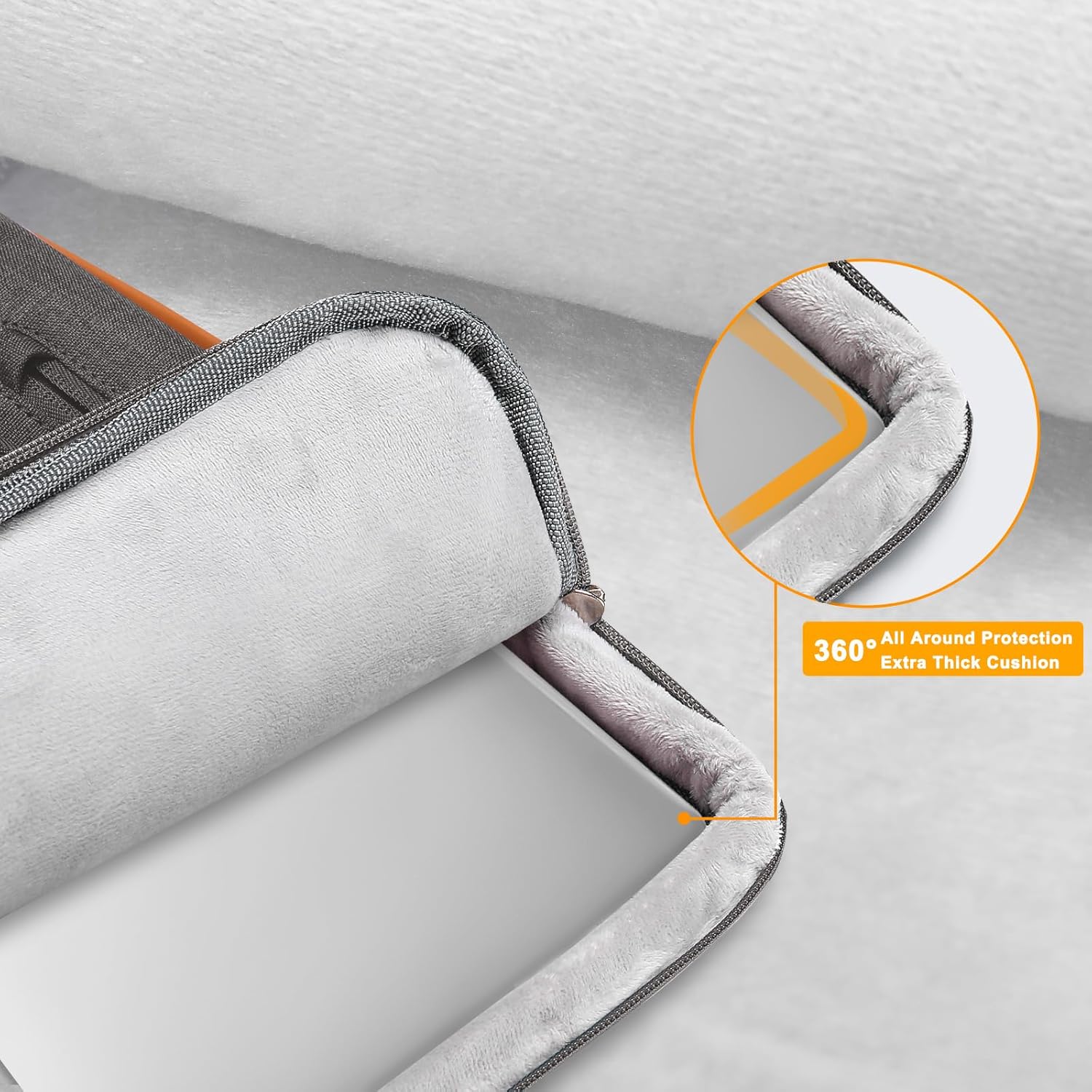 - 360 degree all around protective reinforced interior edge protect your laptop from any accidental dropping. Features foam padding layer and fluffy fleece fabric lining for bump and shock absorption and protection of your computer from accidental scratches. Side opening double zippers on the bag glide smoothly and allows convenient access to your laptop computer.