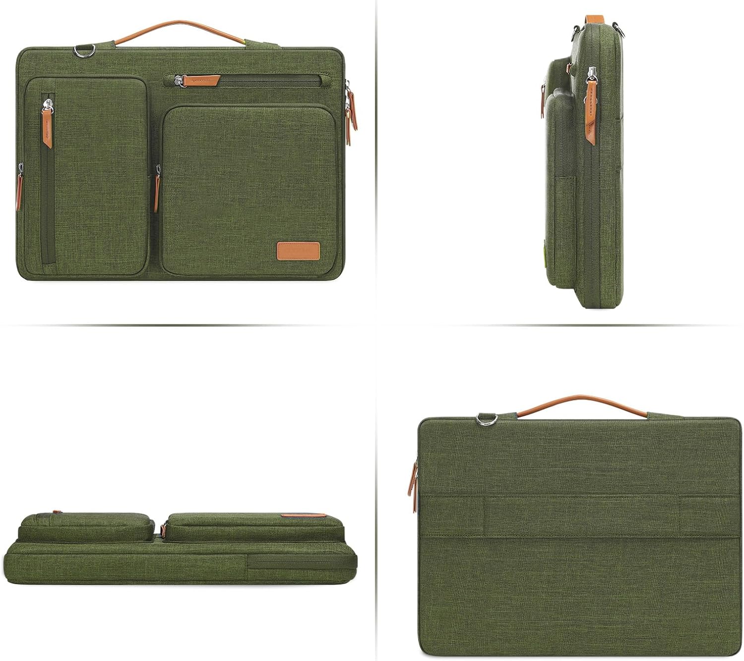 MOSISO 360 Protective Laptop Shoulder Bag,15 inch Computer Bag Compatible with MacBook Air M4 M3 M2/Pro A1990 A1707, Dell XPS Plus,Side Open Messenger Bag with 4 Zipper Pockets&Handle, Olive Green