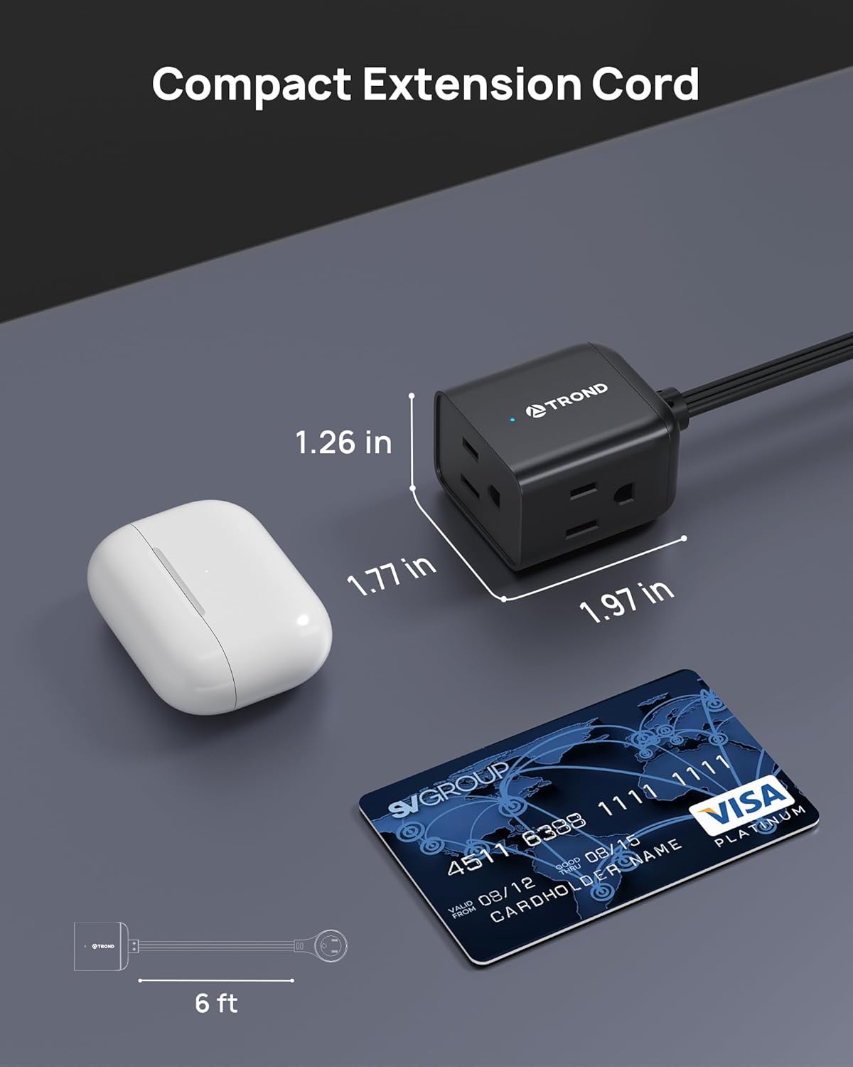 - Sleek 3-Sided Power Cube: Unlike traditional extension cord strips, the smart-looking electric black extension cord features 3 grounded outlets on different sides, allowing you to use bulky plugs without blocking adjacent outlets and the black color blends well with dark decor. Max 1625W (125V/13A)