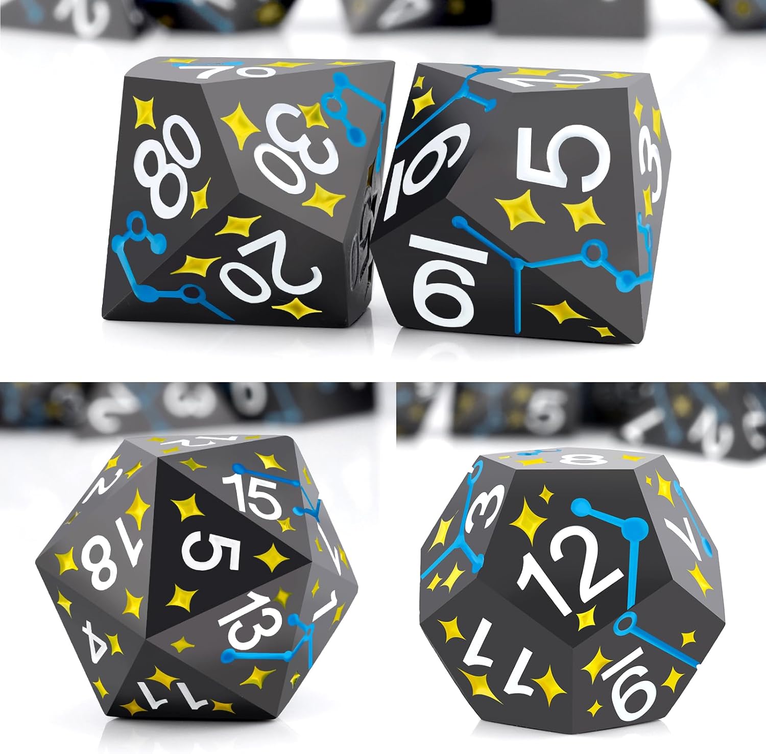 - Star Metal DND Dice Set: Each dnd dice set comes with 7pcs dnd dice of d4, d6, d8, d10, d100, d12 and d20