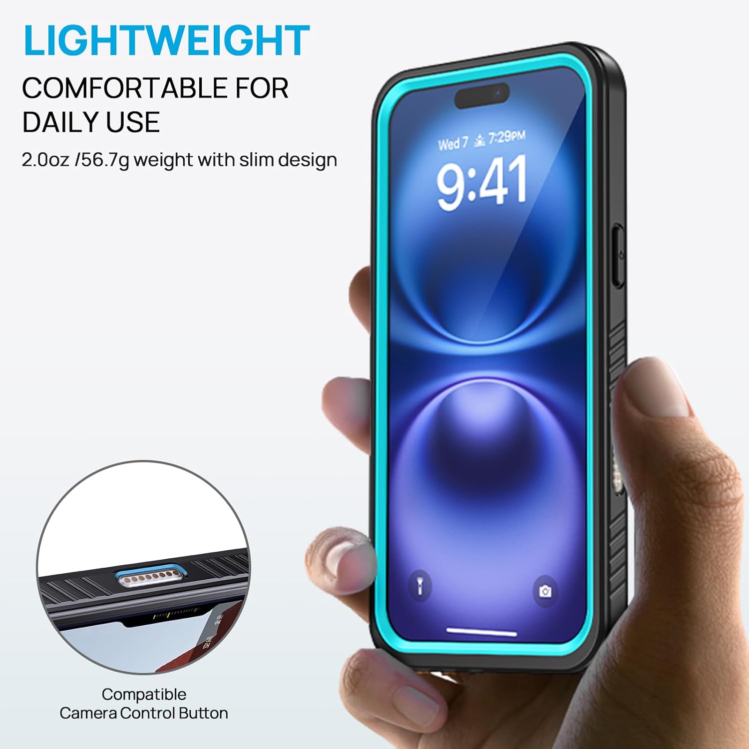- 【Support Use Camera Button to Zoom】iPhone 16 phone case with HD screen protector prevents phone screen scratch, damage and dirt, also won't affect the touch sensitivity, Face ID Compatible; Supports wireless charging and use the camera button to zoom. Note: Open the bottom charging port can make the call sound clearer (ONLY in dry environments, underwater activities must check that the enclosure is fully enclosed)
