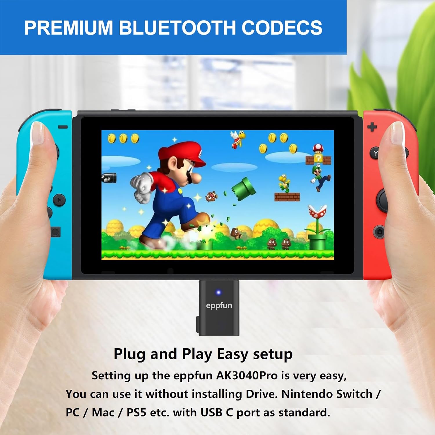 - 【Enjoy Wireless Audio with PS4 or SWITCH】AK3040Pro is a Bluetooth 5.2 audio transmitter Compatible with PS4/5, Nintendo Switch, PC, Mac and is compatible with all Bluetooth headphones from version 2.1 and onwards. With AK3040Pro, enjoy wireless audio with previously unsupported devices, or upgrade your existing Bluetooth listening experience with its selection of premium Bluetooth codecs.