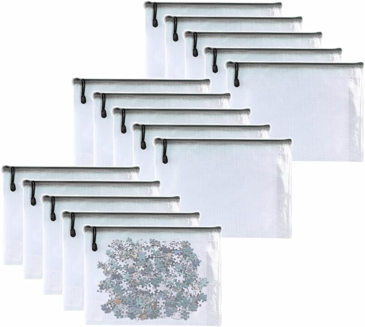 Oaimyy-16 PCS-Mesh Zipper Pouch, Plastic Zip File Folders Puzzle Bags Large Reusable Zipper Pouches for Organizing Classroom Board Game Organization,Home Storage-(Black, 7X 11 Inches)
