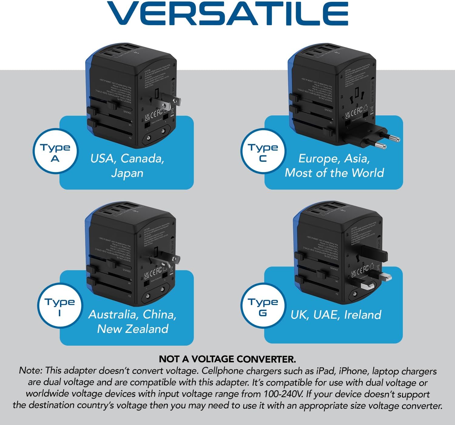 - [2-YEARS MANUFACTURING SUPPORT] - Ceptics travel plug adapter worldwide comes with 2 years manufacturing support providing peace of mind with its durable construction and reliable products. This international adapter is not a voltage converter It will not convert voltage. Please make sure your item supports worldwide voltage 100-240V.
