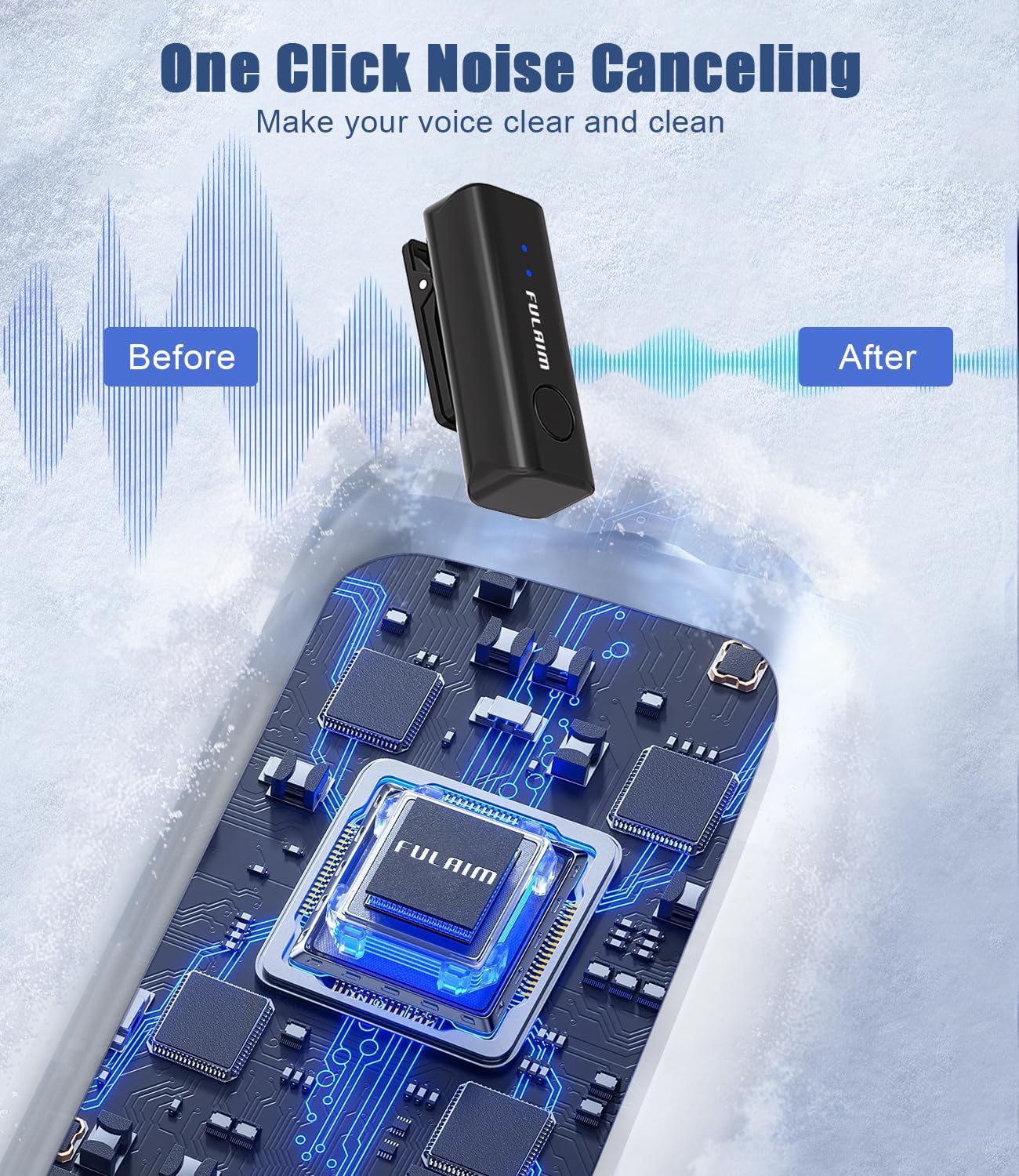 - Wide Compatibility: FULAIM X2 wireless lavalier mic comes with an iPhone adapter and a type-c adapter, making it compatible with a wide range of devices, including iPhone and Android smartphones, as well as tablets.