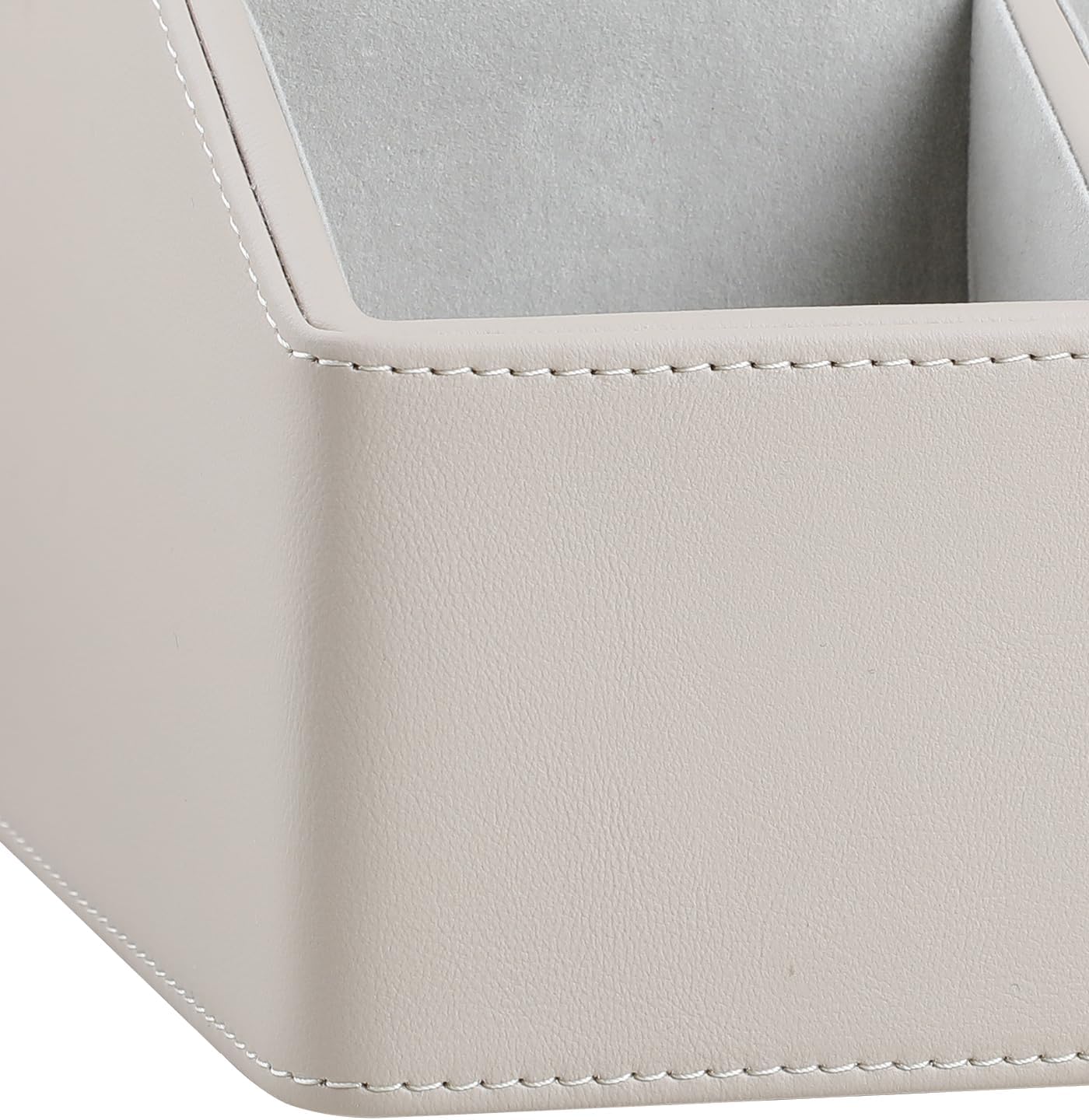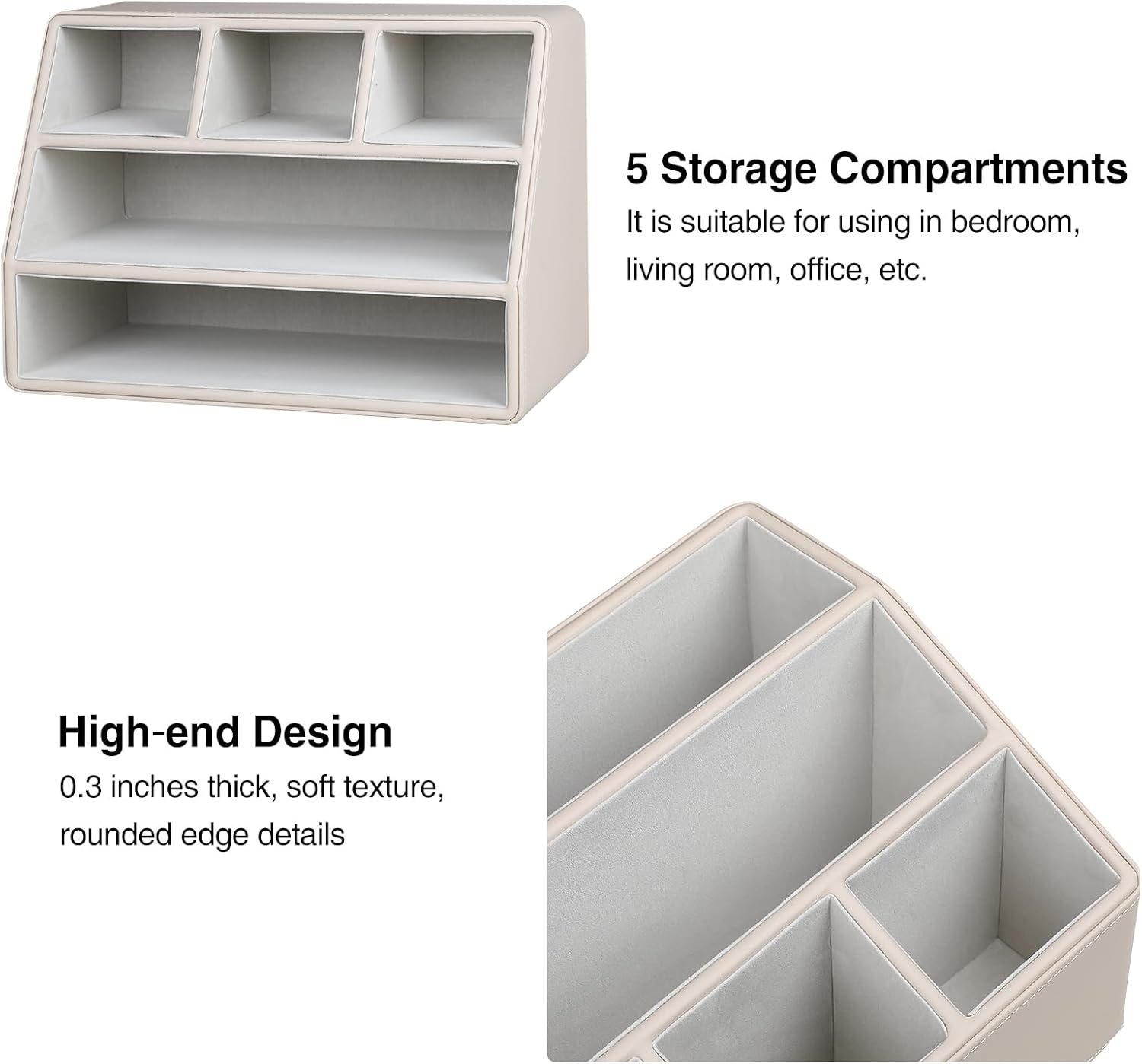 PU Leather Desk Organizer, Luxury Remote Control Holder for Home, Office Desk Accessories Table Caddy Bedside Nightstand Organizer (Dark Beige)