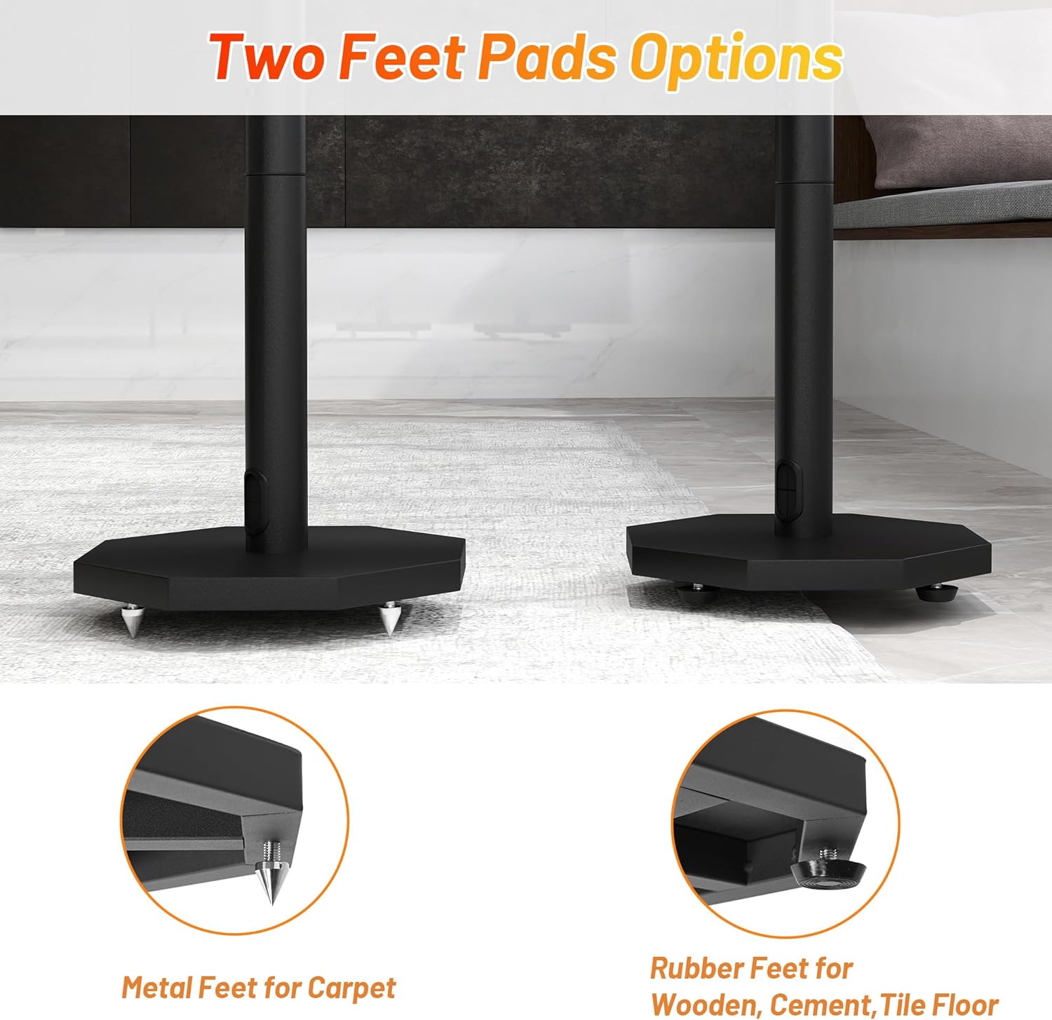 - Easy Assembly & Floor Protection:Designed for quick and tool-free assembly, this speaker stand comes with all necessary hardware and instructions.It includes rubber and metal feet options to protect carpet, wood, or tile floors while ensuring stability and durability