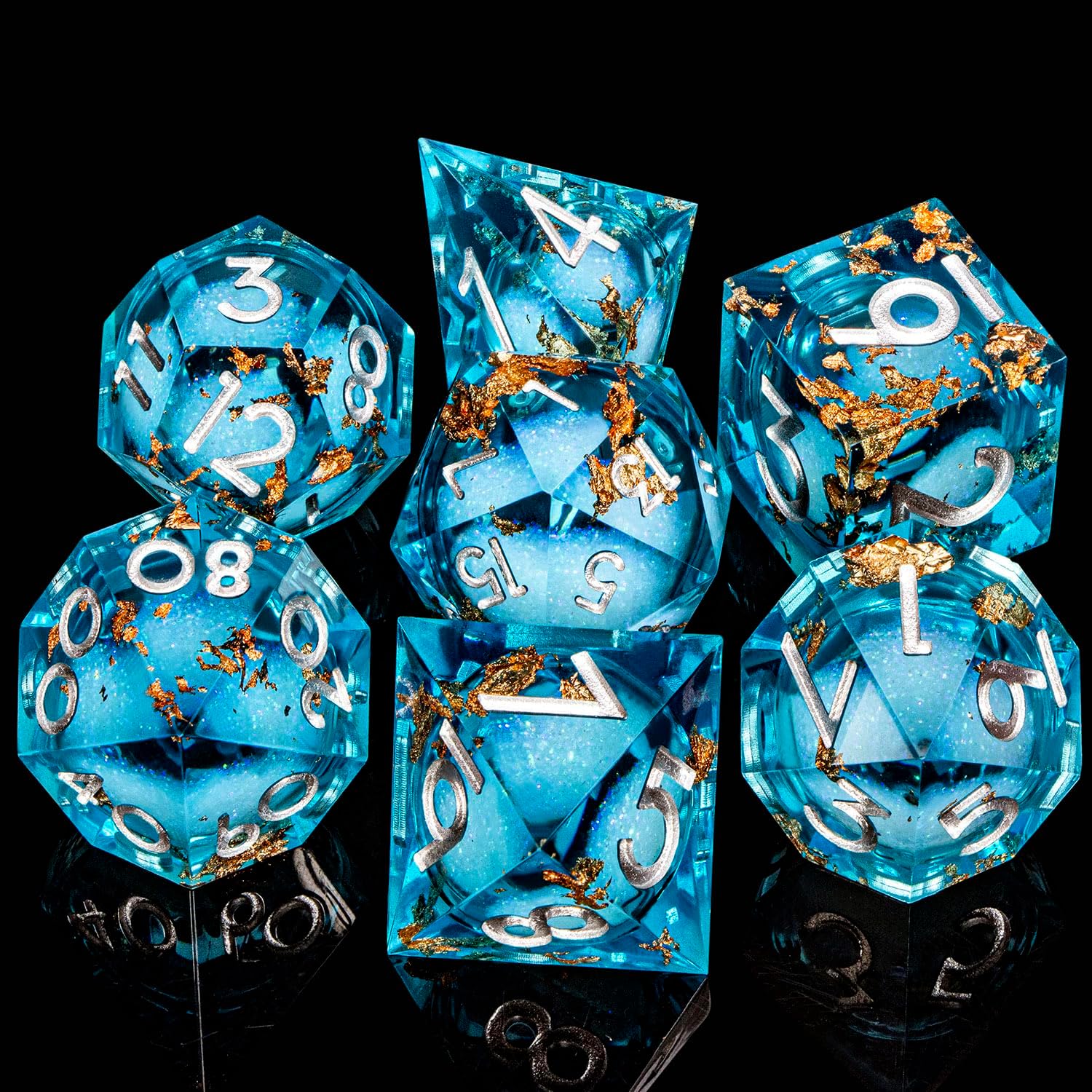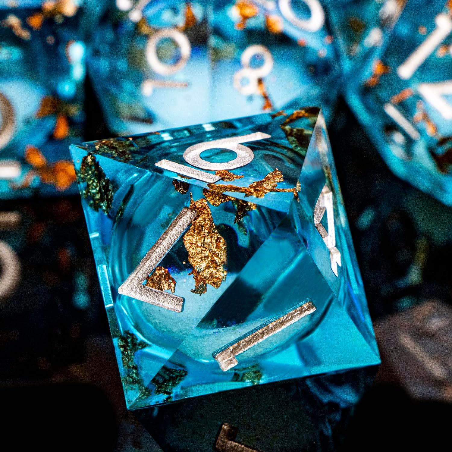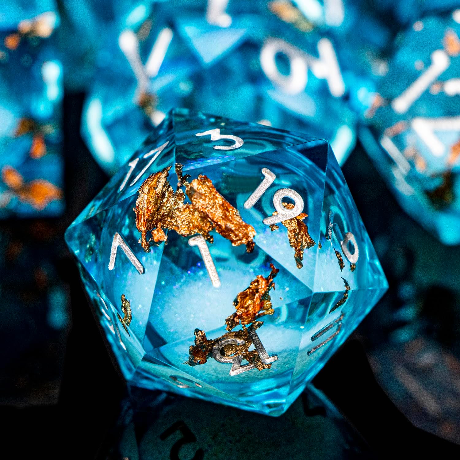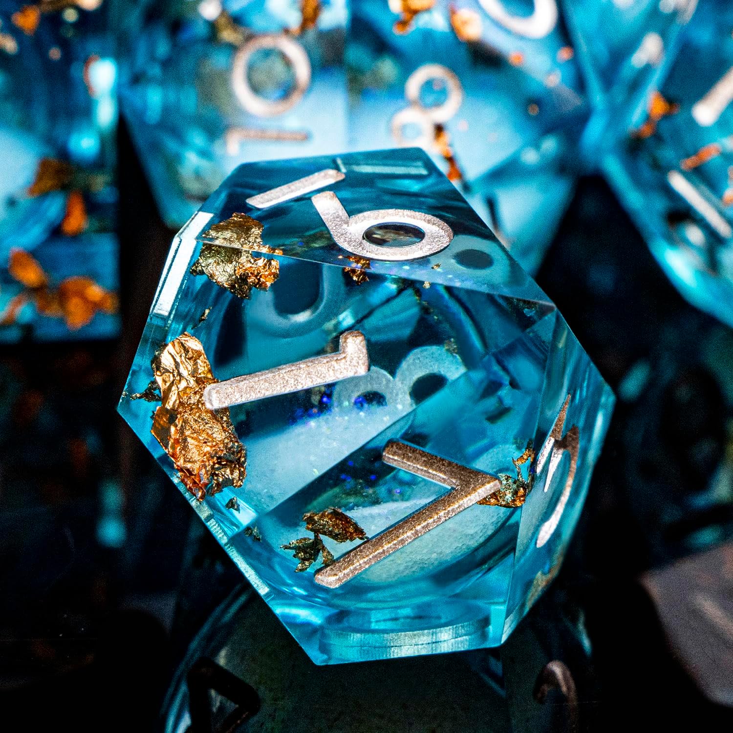 - Liquid Core Dice: At the heart of resin dice lies a transparent sphere, filled with shimmering liquid sand that moves gracefully with every roll. This unique design adds a mesmerizing visual element to your game experience.