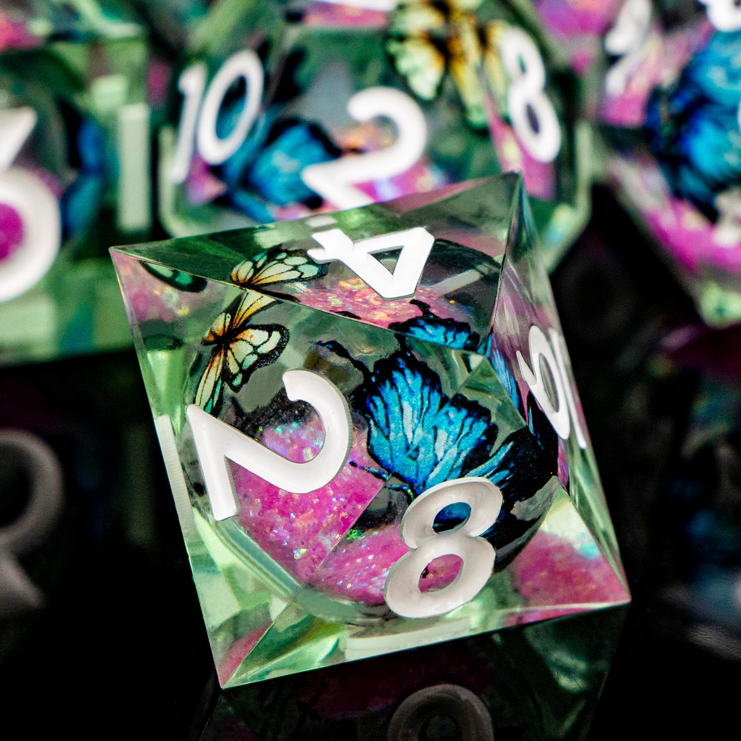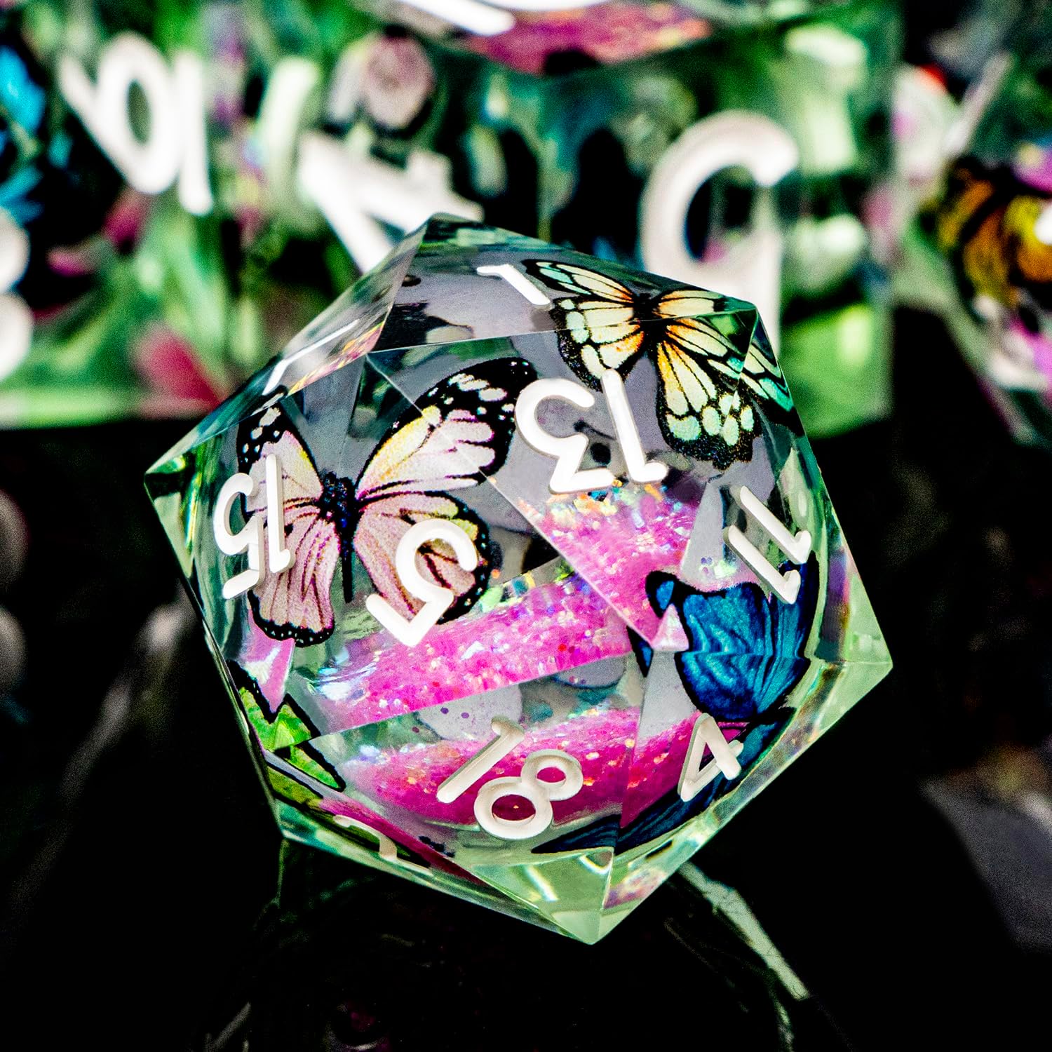- Liquid Core Dice: At the heart of resin dice lies a transparent sphere, filled with shimmering liquid sand that moves gracefully with every roll. This unique design adds a mesmerizing visual element to your game experience.