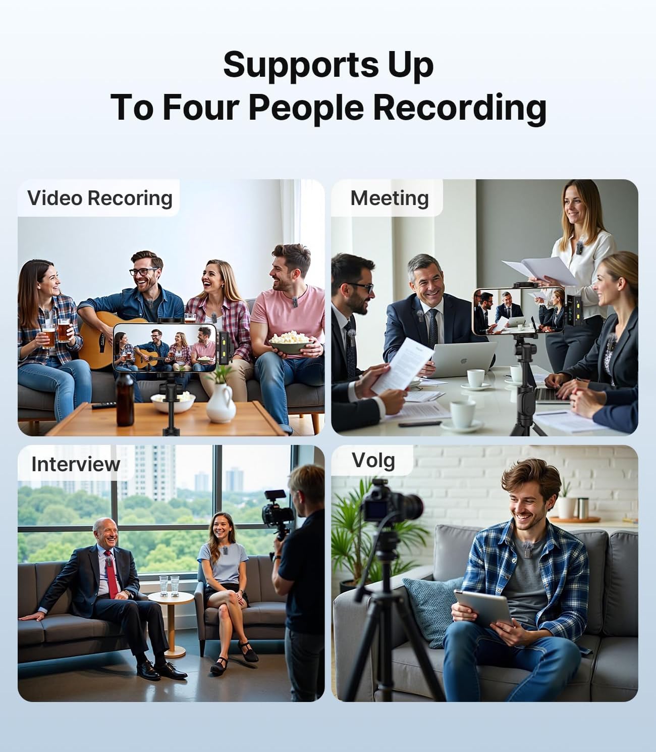 - 4 Transmitters Wireless System: The FULAIM X6 microphone system allows for up to four microphones to be used simultaneously, making it perfect for group presentations, conferences, or interviews.