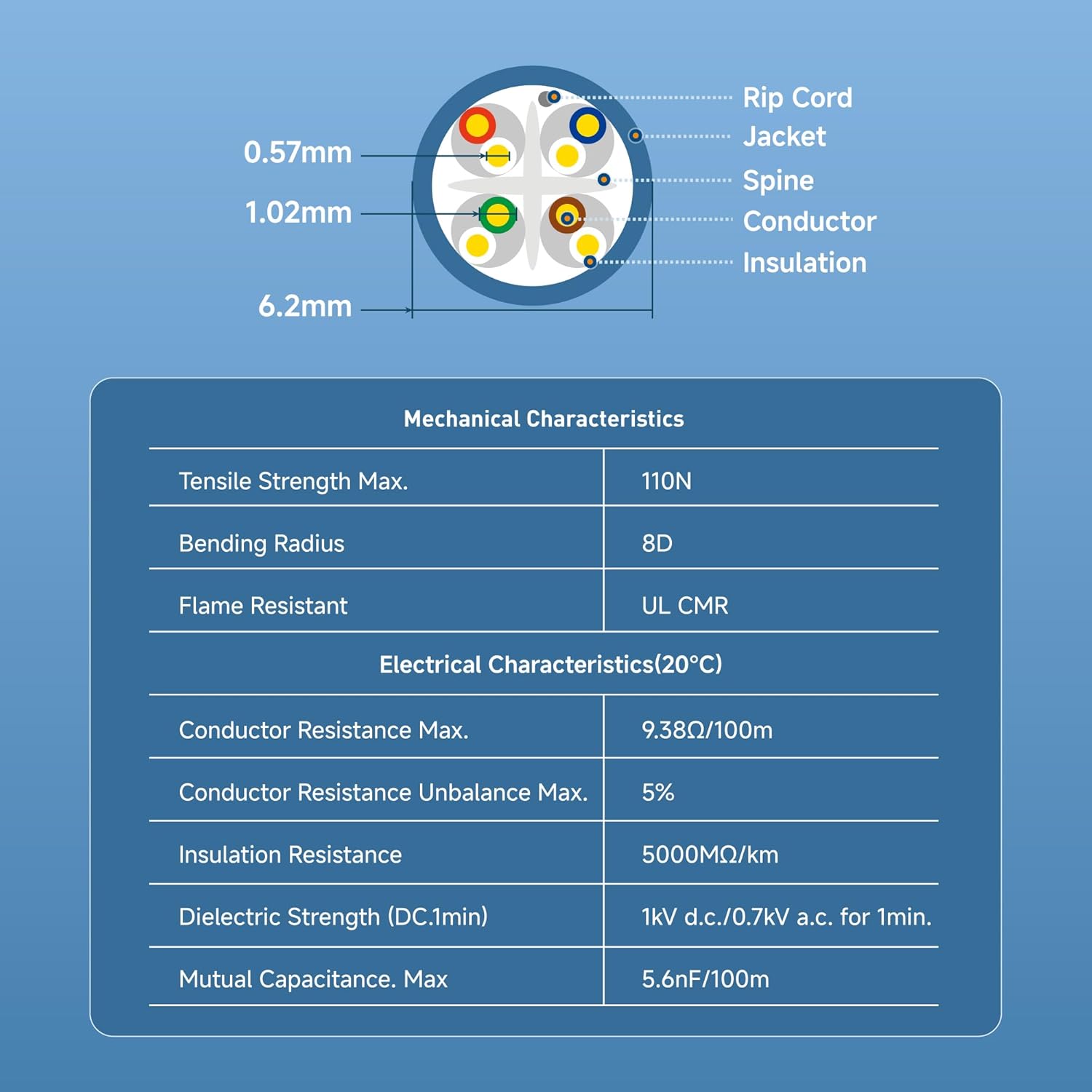 - Riser-Rated Safety: The riser-rated (CMR) jacket provides superior fire resistance, making this ethernet cable spool suitable for installation between floors in residential or commercial buildings. Its safety rating offers peace of mind for professional network installations in multi-story environments.