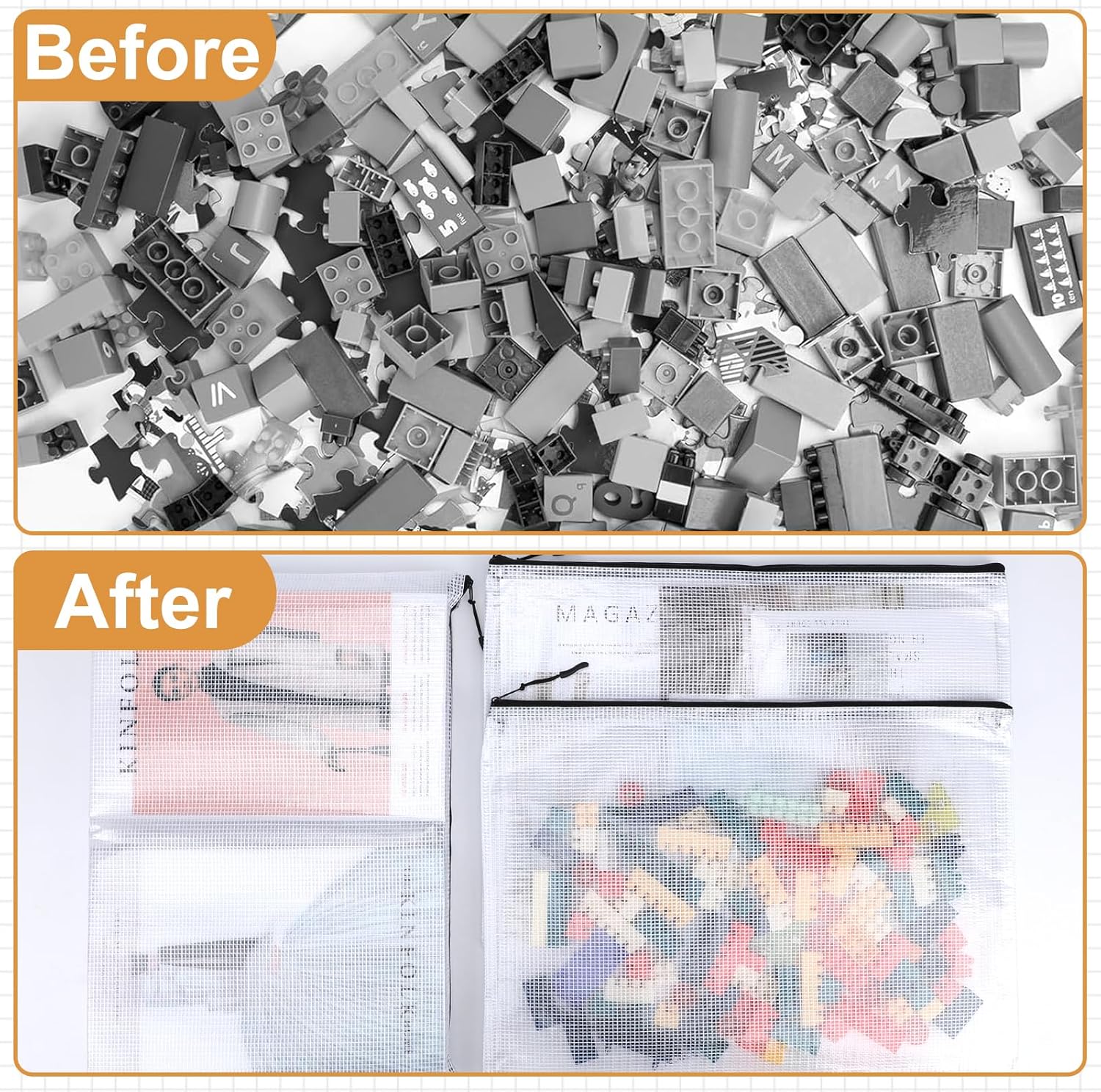 12pcs Mesh Zipper Pouch Puzzle Storage Bags A3 17x12 Inches Large File Bags Black Reusable Zipper Pouches for Organizing, Classroom Board Game Organization