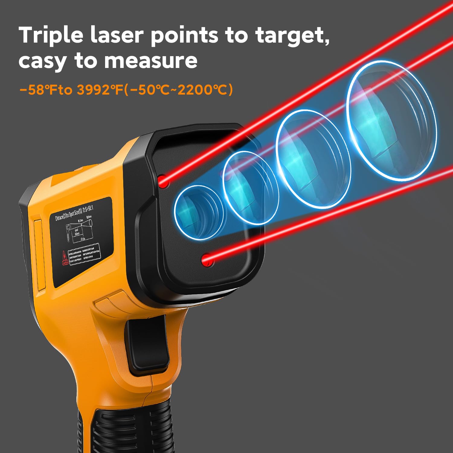 -58°F to 3992°F High-Temp Temperature Gun, Industrial IR Thermometer Gun High Precision Triple Laser Non-Contact Pyrometer Termometer for Furnace, Kiln, Forge, Furnace, Engine, HVAC