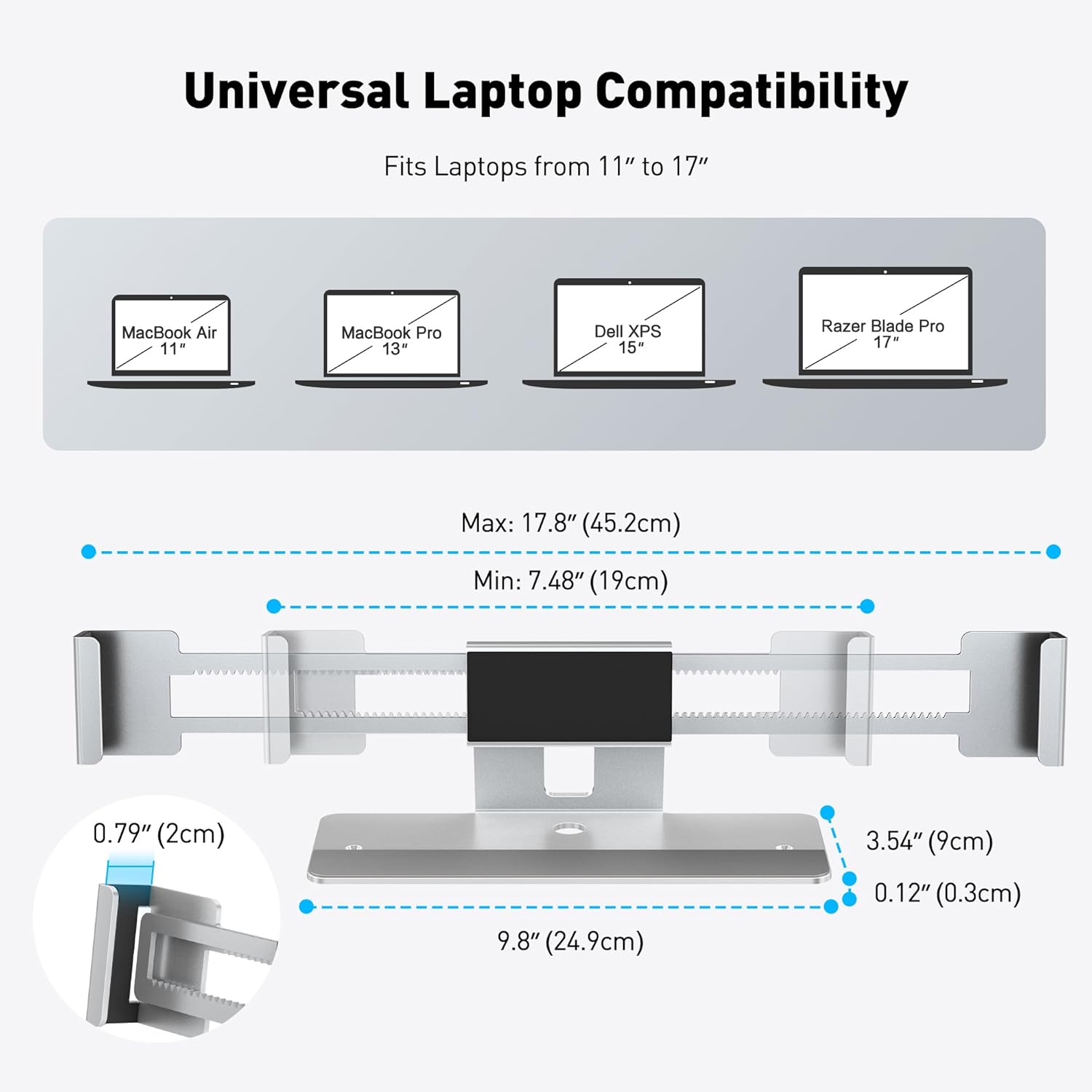 - Premium Aluminum Build: Crafted from a solid aluminum alloy, this computer lock station combines sleek design with long-lasting durability. Soft cushioned brackets and a non-slip base keep your laptop stable while preventing scratches or surface damage.