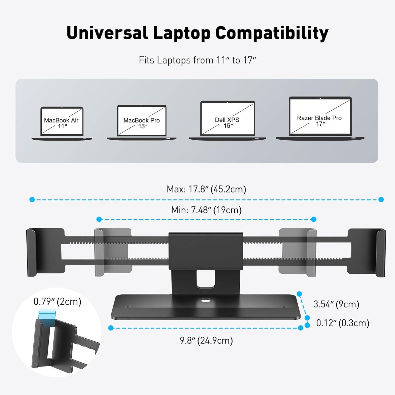 - Premium Aluminum Build: Crafted from a solid aluminum alloy, this computer lock station combines sleek design with long-lasting durability. Soft cushioned brackets and a non-slip base keep your laptop stable while preventing scratches or surface damage.