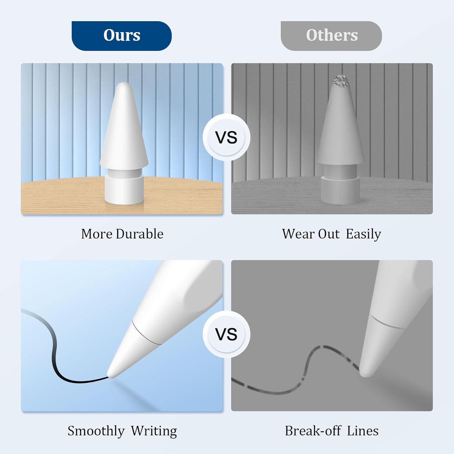 - 【What You Will Get】 The package includes 4 replacement apple pencil nibs and a storage box.We are confident in the quality of our Replacement Tips for Apple Pencil, which is why we offer a 1-year warranty. If you encounter any issues, please feel free to contact us via Amazon message, and we will do our best to assist you.