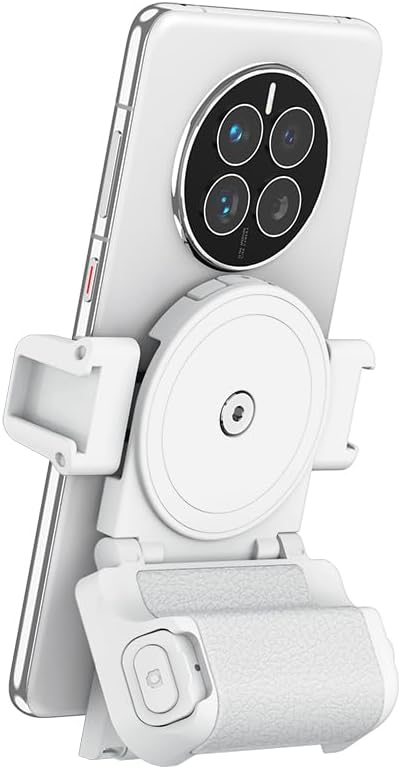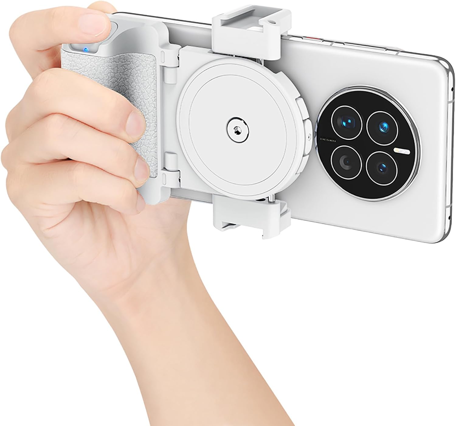 KIWIFOTOS Phone Camera Grip Smartphone Tripod Mount Handle Holder for iPhone 15 14 Pro Max S23 S22 Ultra with Bluetooth Shutter and Cold Shoe Adapter Selfie Vlog Video Shooting-White