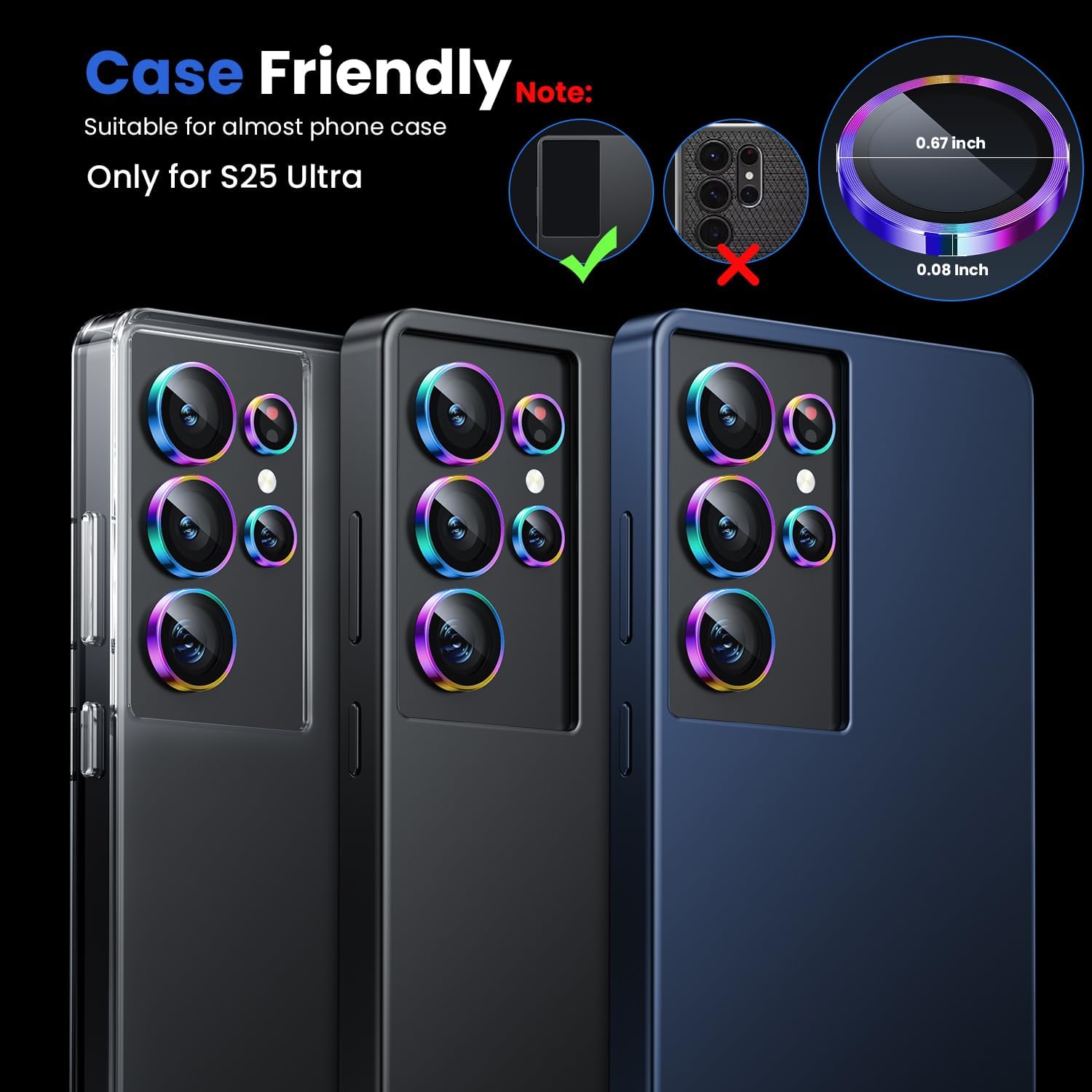 - Keep Original [Galaxy] Shooting: Does not affect taking photos even at night using this s25 ultra camera lens protector, fundamentally solves the problem of photo glare. No residue, No fog, No blue light is caused when using flash, maintains original amazing image performance.