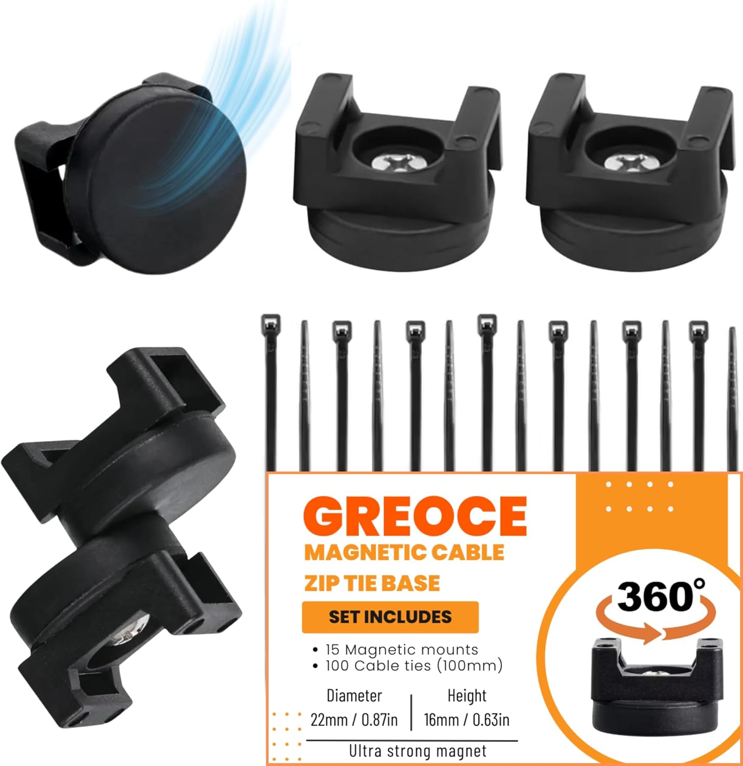 - PACKAGE CONTAIN: 15 pieces of magnetic zip tie mounts, 100 zip ties 100mm, maximum vertical pull of approx 8.5 pounds. Equipped with industrial-grade magnets, this magnetic cable organizer keeps your cables secure on metal surfaces, perfect for garages, offices, and workspaces.
