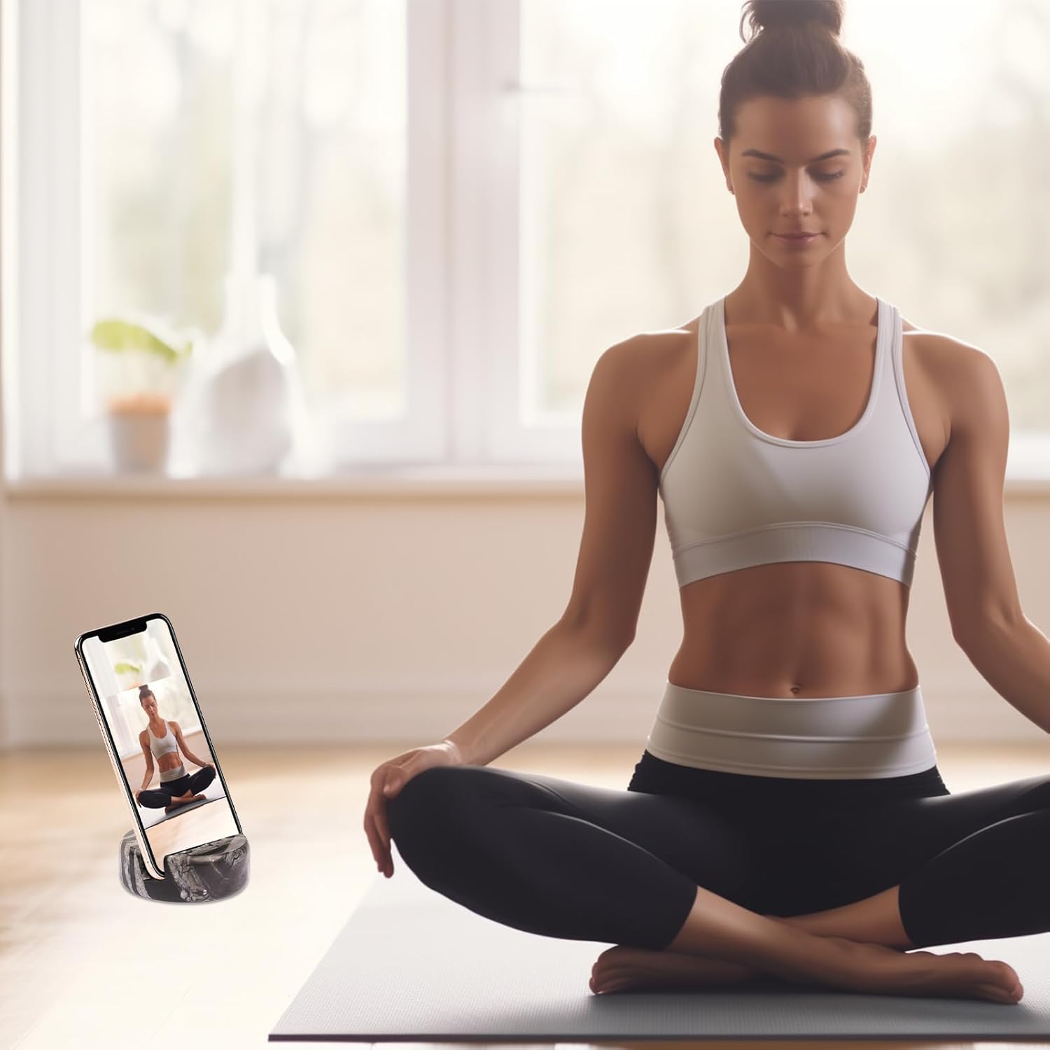 Marble Phone Stand for Desk - Cell Phone Holder for Nightstand Office Decor Compatible with iPhone 17 16 15 Pro Max iPad mini, Telephone Boho Black Marble Kitchen Accessories